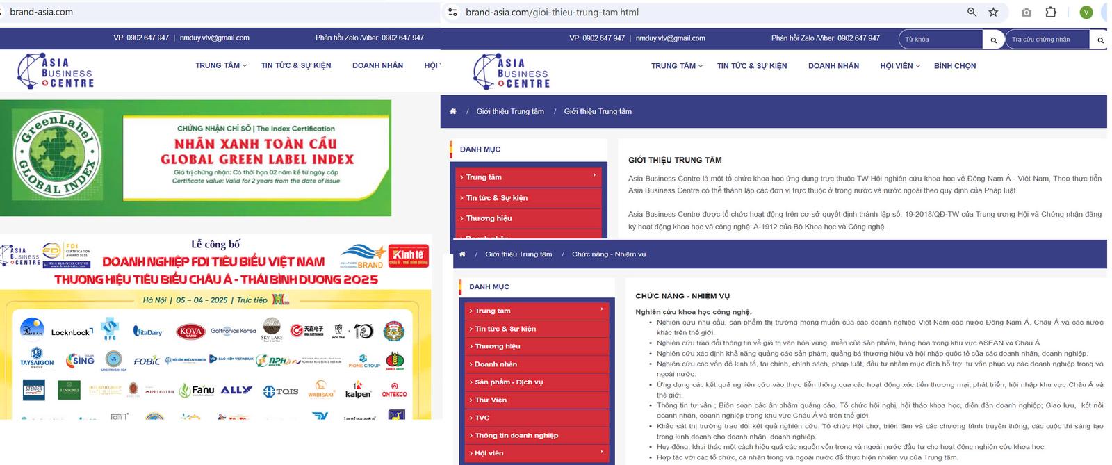 Trên website https://www.brand-asia.com/ đơn vị này giới thiệu: Asia Business Centre là một tổ chức khoa học ứng dụng trực thuộc TW Hội nghiên cứu khoa học về Đông Nam Á - Việt Nam, Theo thực tiễn Asia Business Centre có thể thành lập các đơn vị trực thuộc ở trong nước và nước ngoài theo quy định của Pháp luật. Asia Business Centre được tổ chức hoạt động trên cơ sở quyết định thành lập số: 19-2018/QĐ-TW của Trung ương Hội và Chứng nhận đăng ký hoạt động khoa học và công nghệ: A-1912 của Bộ Khoa học và Công nghệ.