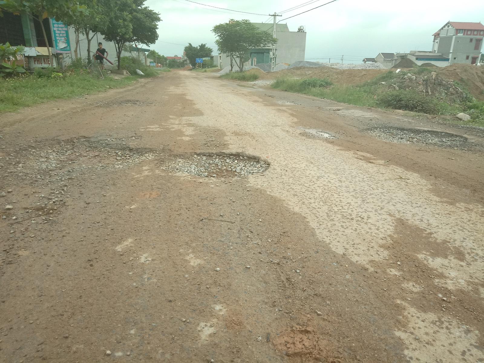 Nhiều xe ô tô qua lại chở cát, khiến đường giao thông hư hỏng, xuất hiện ổ gà, ổ trâu. Ảnh: VT