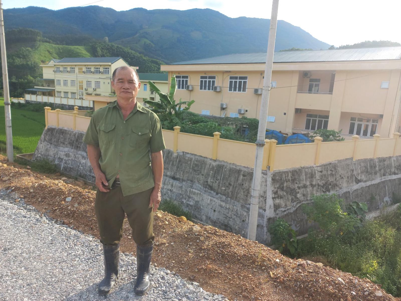 Ông Đặng Minh Long trước khu vực Trường Mầm non Đồng Lâm. Ảnh: Đại Dương