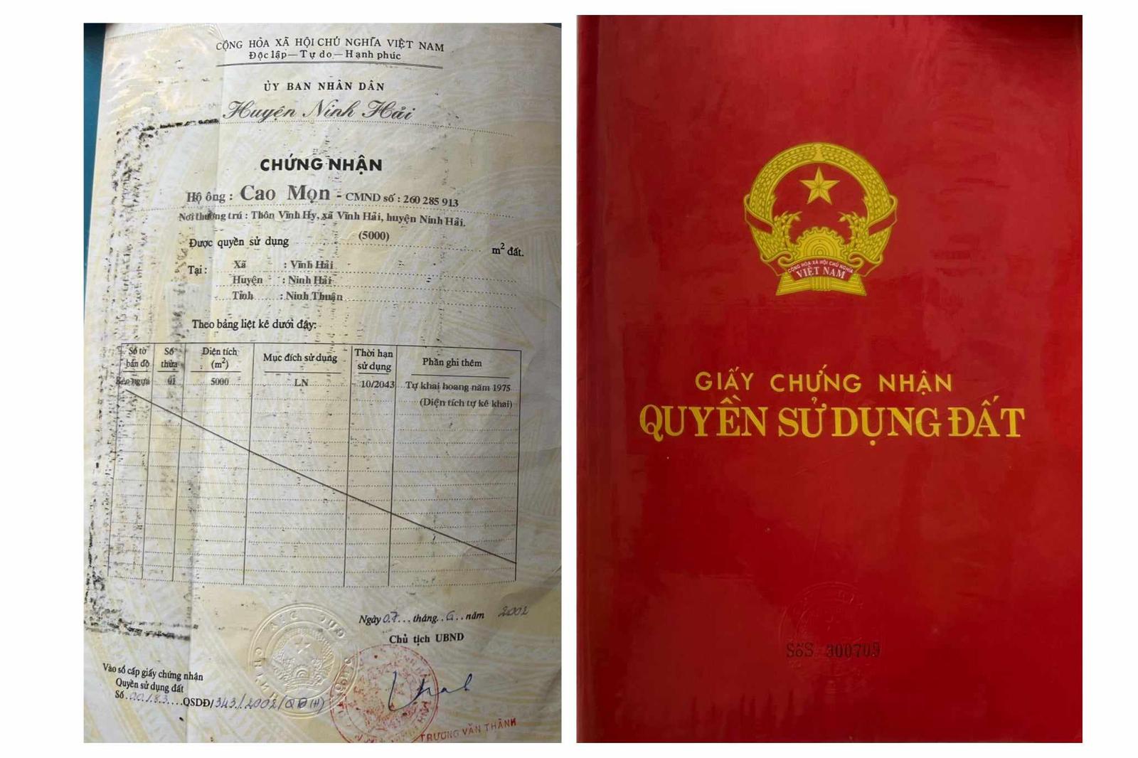 Hay trường hợp ông Lê Hoàng Quốc Việt, năm 2012, được UBND huyện Ninh Hải cấp GCNQSDĐ số 464294 cho một phần diện tích (cấp 590m2). Còn lại 1.766m2 thuộc thửa đất số 50 (chỉnh lý từ một phần thửa 13, 18, 25) được Văn phòng Đăng ký đất đai Ninh Thuận - Chi nhánh Ninh Hải xác định ranh giới, mốc giới thửa đất tại thực địa và đã lập bản ranh giới mốc đất nhưng đến nay chưa cấp GCNQSDĐ với lý do “khu đất nằm trong khu vực Vườn Quốc gia Núi Chúa”.