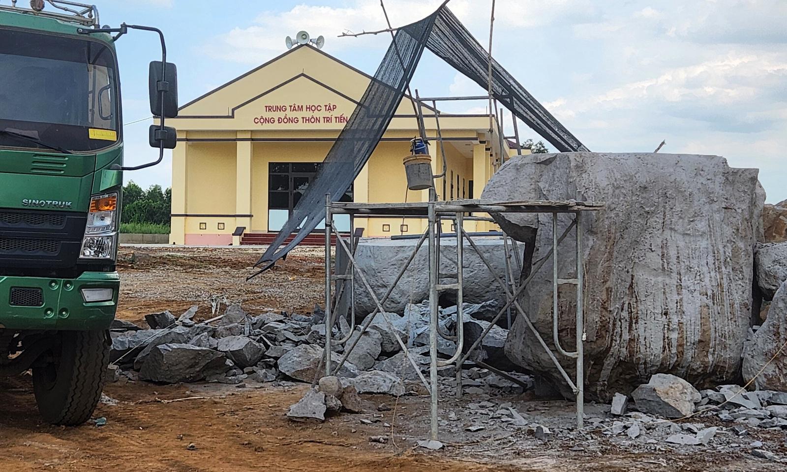 Đá "bủa vây" cả Trung tâm Học tập cộng đồng thôn Trí Tiến, xã Gio Sơn. Ảnh: Minh Tân