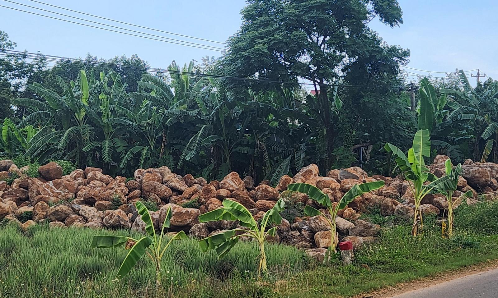 Những bãi tập kết đá trái phép vẫn cứ tồn tại, tình trạng khai thác đá trái phép vẫn chưa được giải quyết triệt để trên địa bàn các xã phía Tây huyện Gio Linh. Ảnh: Minh Tân