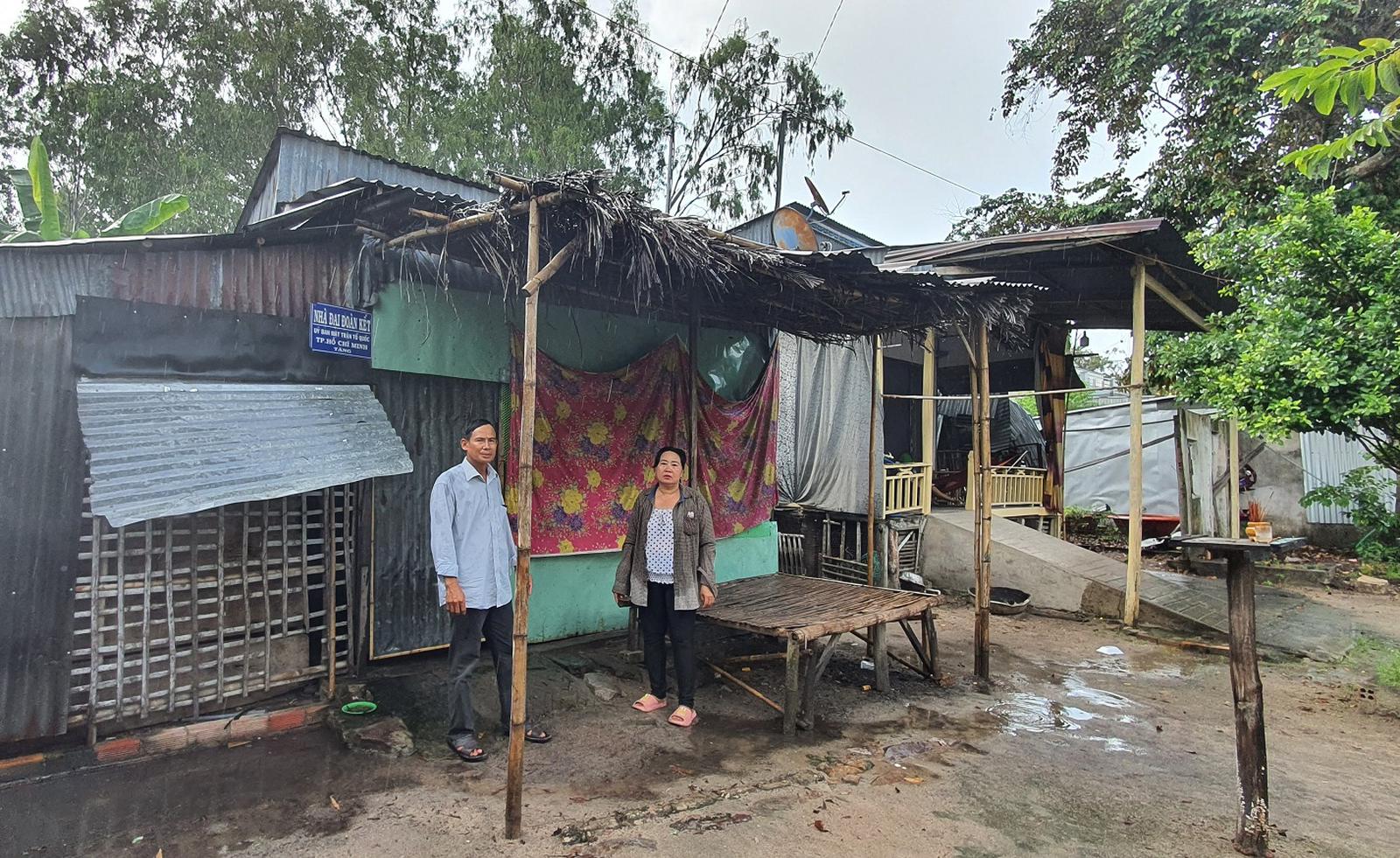 Vợ chồng bà Bùi Kim Bình (con bà Xuyến) bên những căn nhà năm xưa bà Xuyến cho người dân mượn đất ở nhờ. Ảnh: Chu Tuấn