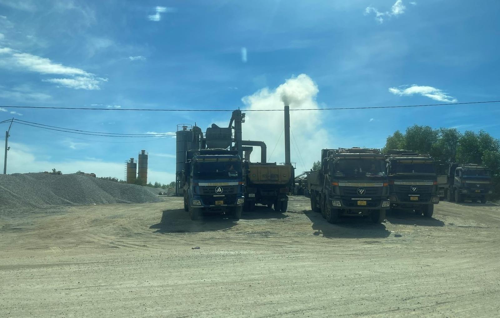 Trạm bê tông cao khoảng 10m, gồm nhiều khối dây chuyền máy móc đang được vận hành. Cạnh đó, hàng ngàn m3 đá, cát nguyên liệu tập kết xung quanh trạm trộn bê tông, các máy xúc liên tục đưa đá vào lò trộn tạo ra tạo tiếng ồn ầm ĩ.