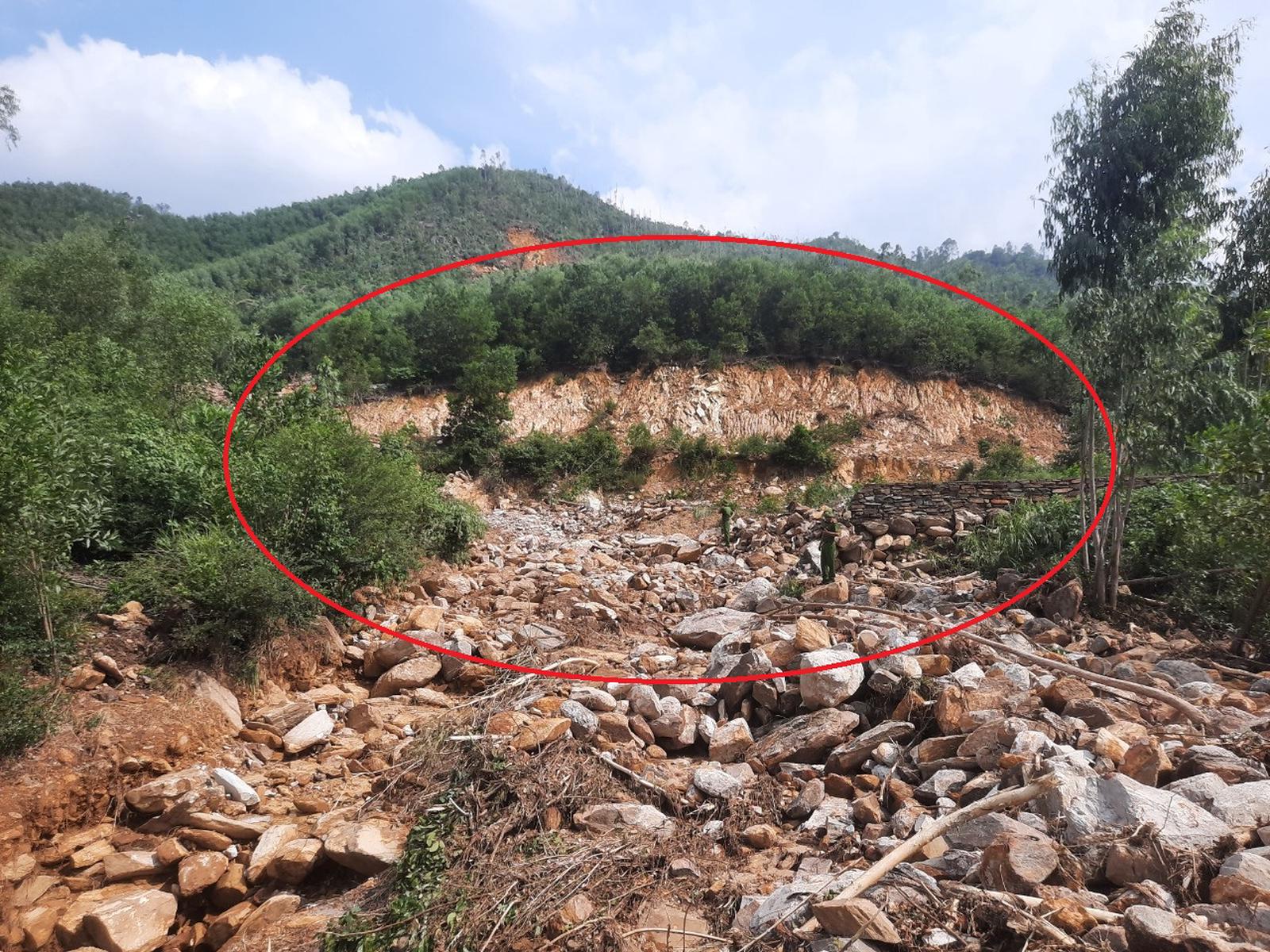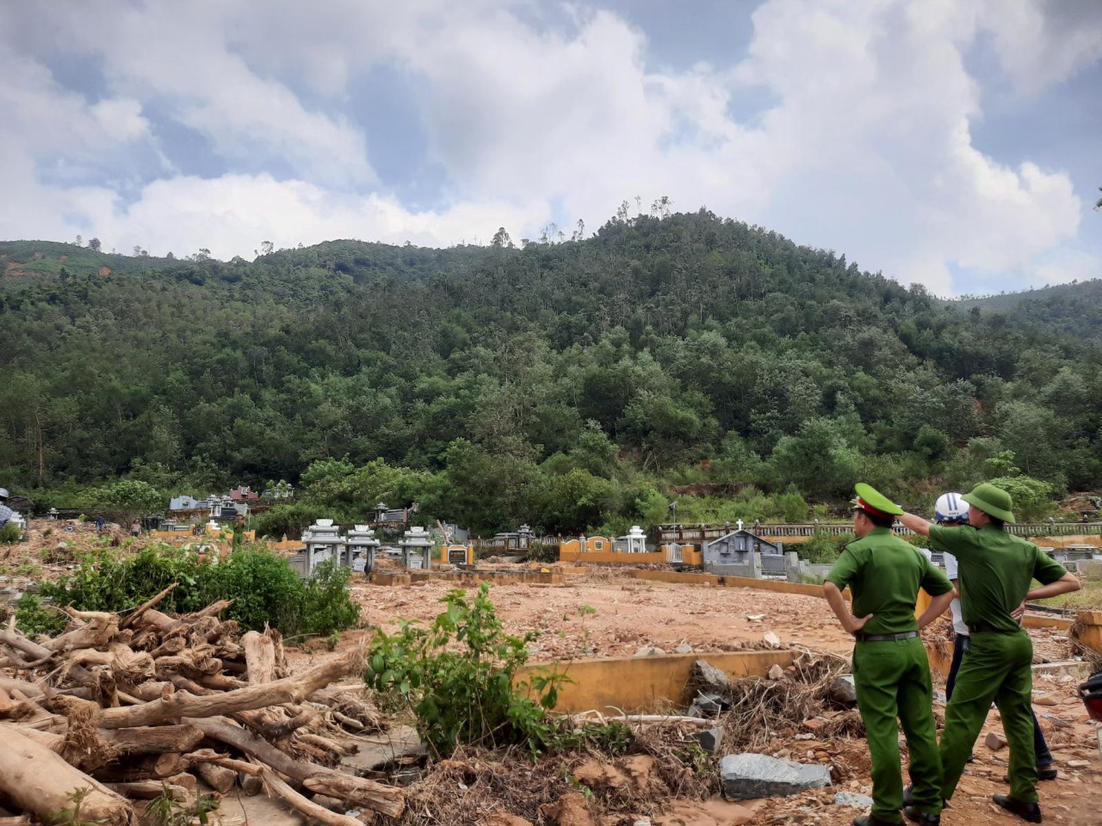 Tại hiện trường xảy ra nhiều điểm sạt lở đất, đá mà theo thống kê của cơ quan chức năng, có 6 điểm sạt lở với diện tích hơn 2,2ha; riêng khu vực có mộ khối lượng đất, đá là 6.100m3, chủ yếu là đá mồ côi, vùi lấp làm hư hỏng hơn 600 ngôi mộ.