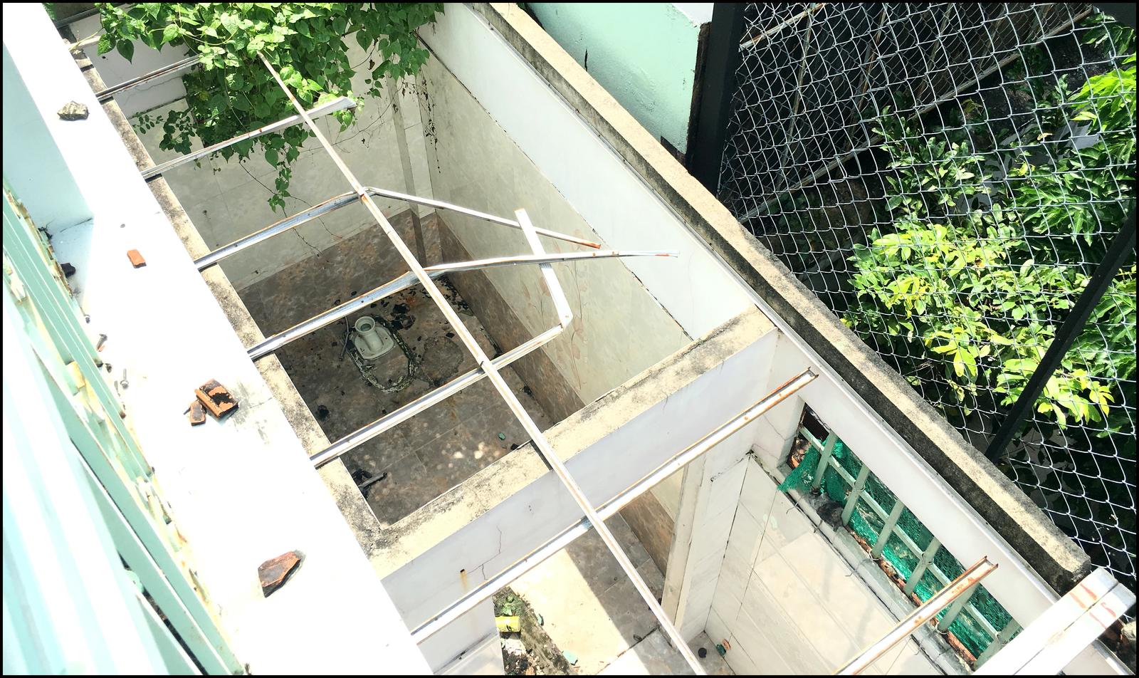 Toàn bộ phần mái tôn, bồn cầu và nhiều vật dụng đã bị tháo dỡ, hủy hoại một cách không thương tiếc. Ảnh: CT