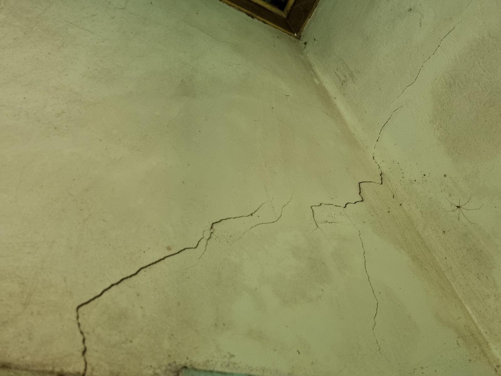 Nhiều vị trí của nhà ở bị lún, nứt, thấm dột gây ảnh hưởng tới đời sống sinh hoạt của người dân. Ảnh: HL