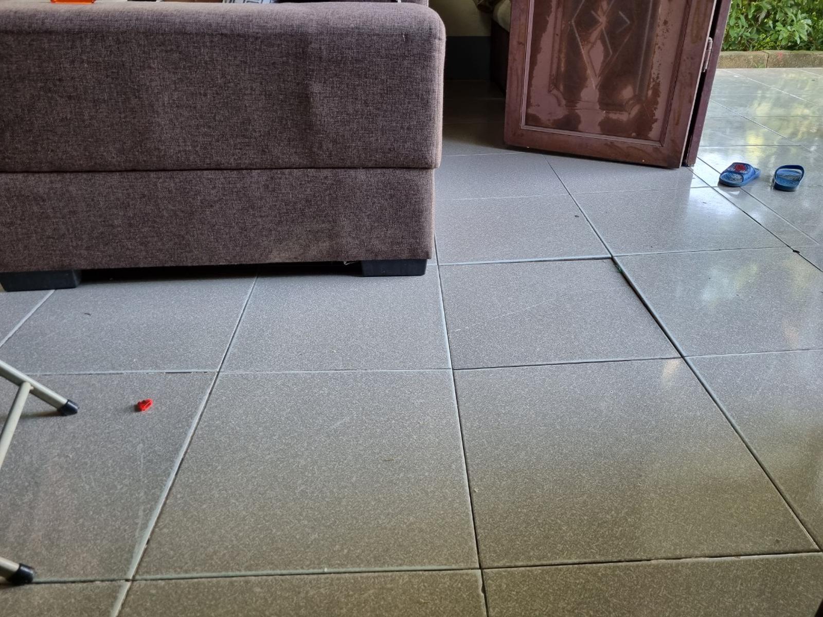 Hiện, căn nhà cấp 4 bị nứt tường, sụp mái, nền nhà cũng bị sụt lún nhiều vị trí, thấm dột. Cả gia đình gồm người lớn và trẻ nhỏ sinh hoạt rất khổ sở, đặc biệt vào những hôm trời mưa gió. Đáng nói là, tình trạng nêu trên đã xảy ra kéo dài từ đầu năm 2021 đến nay.