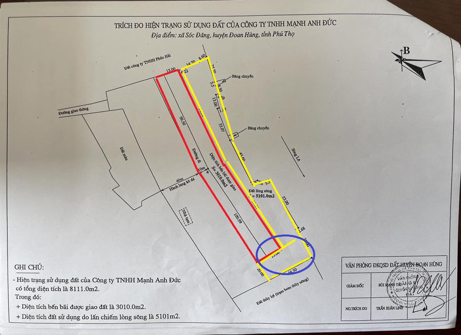 Rõ ràng, UBND tỉnh Phú Thọ cấp phép cho Cty Mạnh Anh Đức chỉ được xây dựng trong phạm vi đất được tỉnh cho thuê tại Quyết định số 839/QĐ-UBND ngày 12/12/2018, với diện tích 3.010m2.