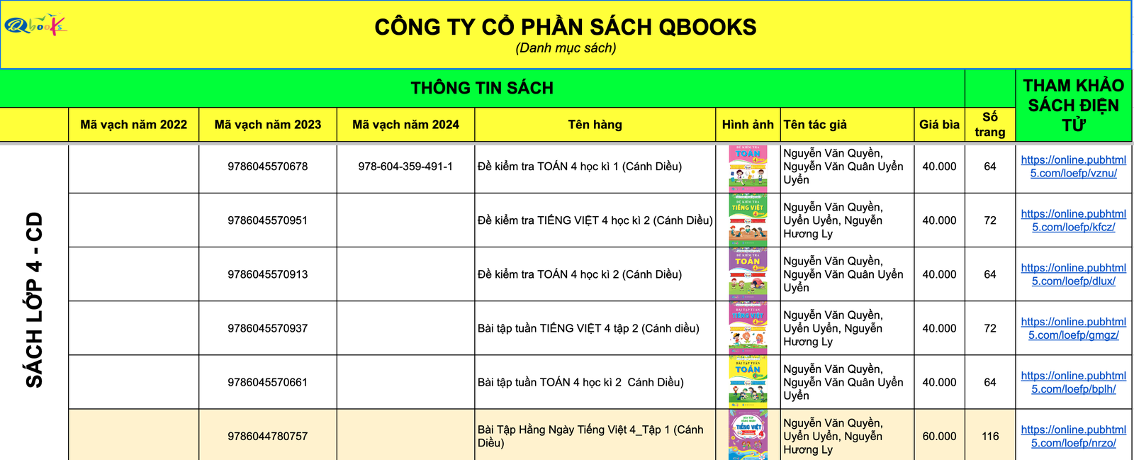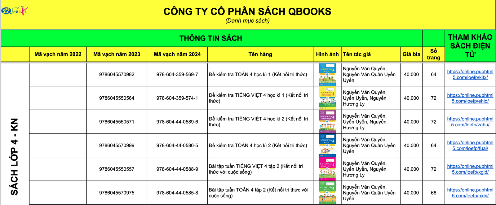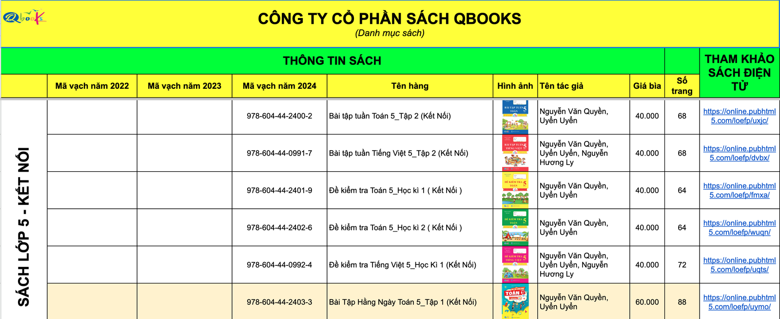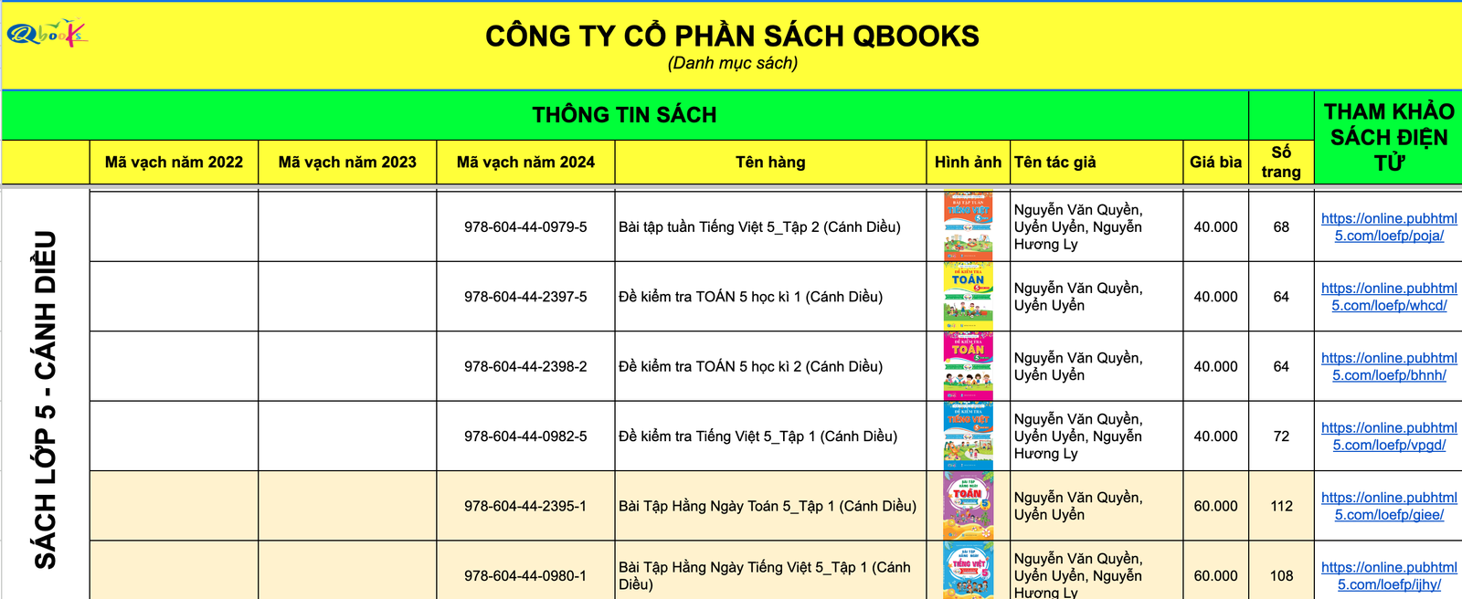 Theo danh sách được nhân viên Công ty Qbooks chia sẻ, các đầu sách trải dài từ lớp 1 - lớp 5, với mức giá từ 40.000 đồng/quyển - 60.000 đồng/quyển.