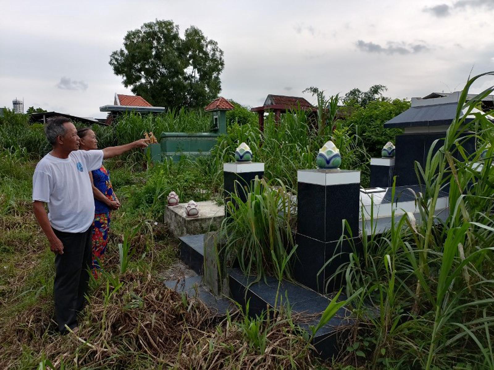Thửa đất của gia đình ông Nguyễn Văn Điện bị lừa bán qua nhiều người hiện tại đang có hơn 100 ngôi mộ người thân của gia đình chôn cất tại đây. Ảnh: Nguyên Dũng