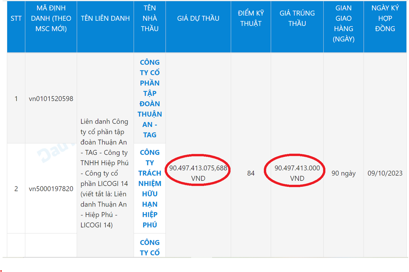 Tổng cộng Liên danh Công ty CP Licogi 14 - Công ty CP Phát triển xây dựng và Thương mại Thuận An - Công ty TNHH Hiệp Phú đã trúng và thực hiện 2 gói thầu với giá trị hơn 577,4 tỷ đồng.