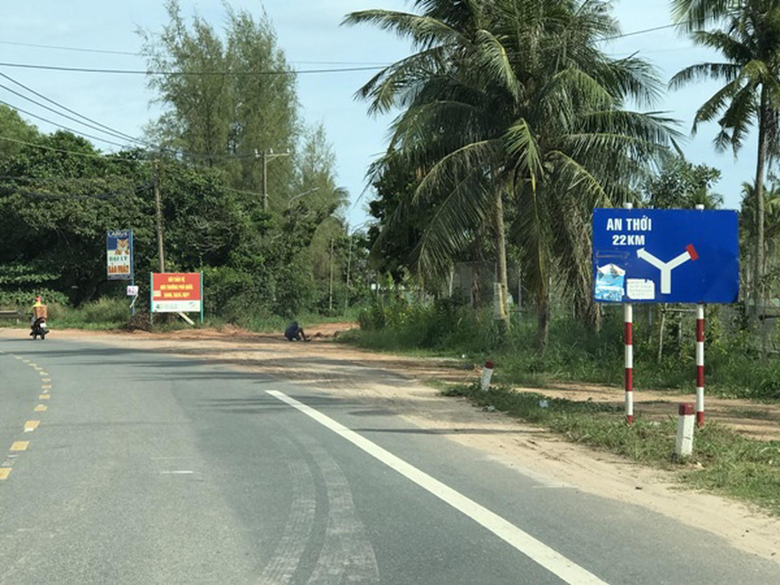 Đường Dương Đông - An Thới chẻ đôi đất của người dân, phần trên thì cấp sổ, còn phần dưới thì được xem là đất rừng phòng hộ và không bồi thường. Ảnh: GT