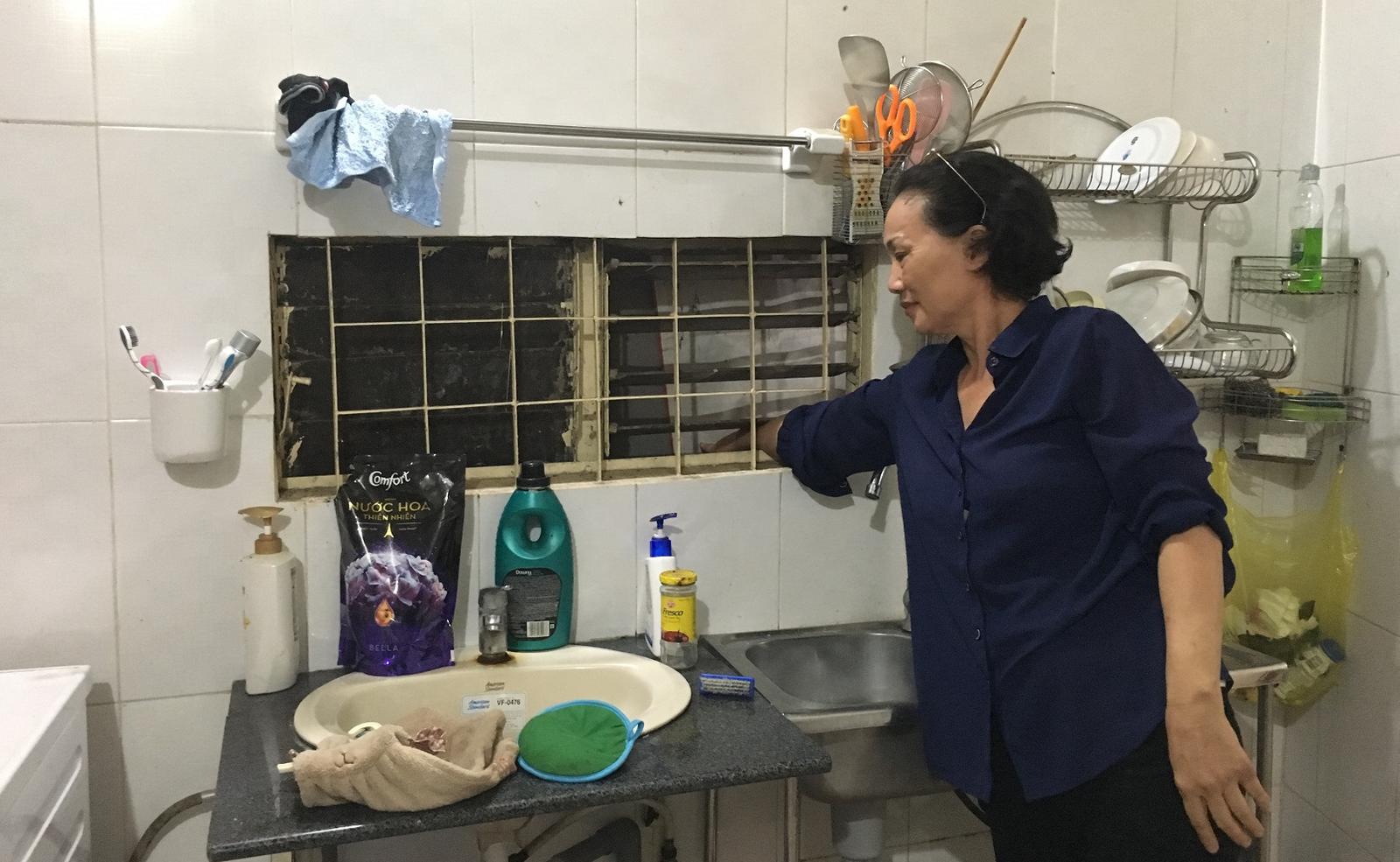 Bà Lương cho biết, cửa sổ nhà bếp của gia đình bị bịt lại vì gia đình nhà số 224/1/26 đường Ung Văn Khiêm đang sử dụng phần đất trên lưng cống thoát nước. Ảnh: Nam Hà