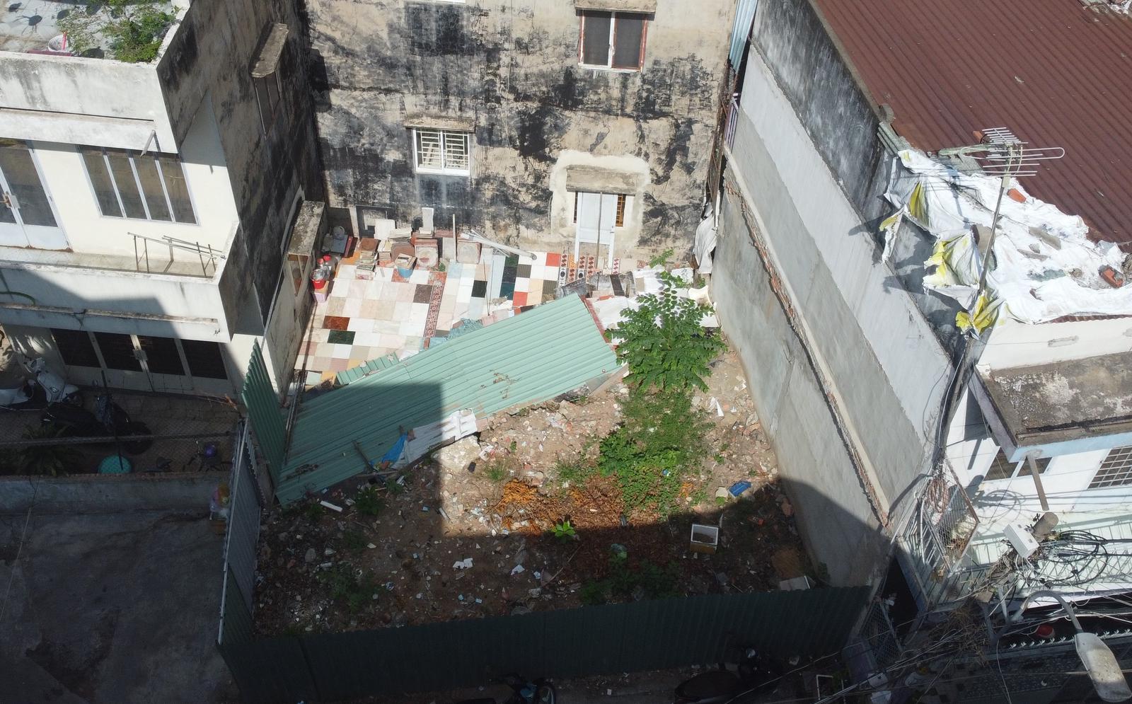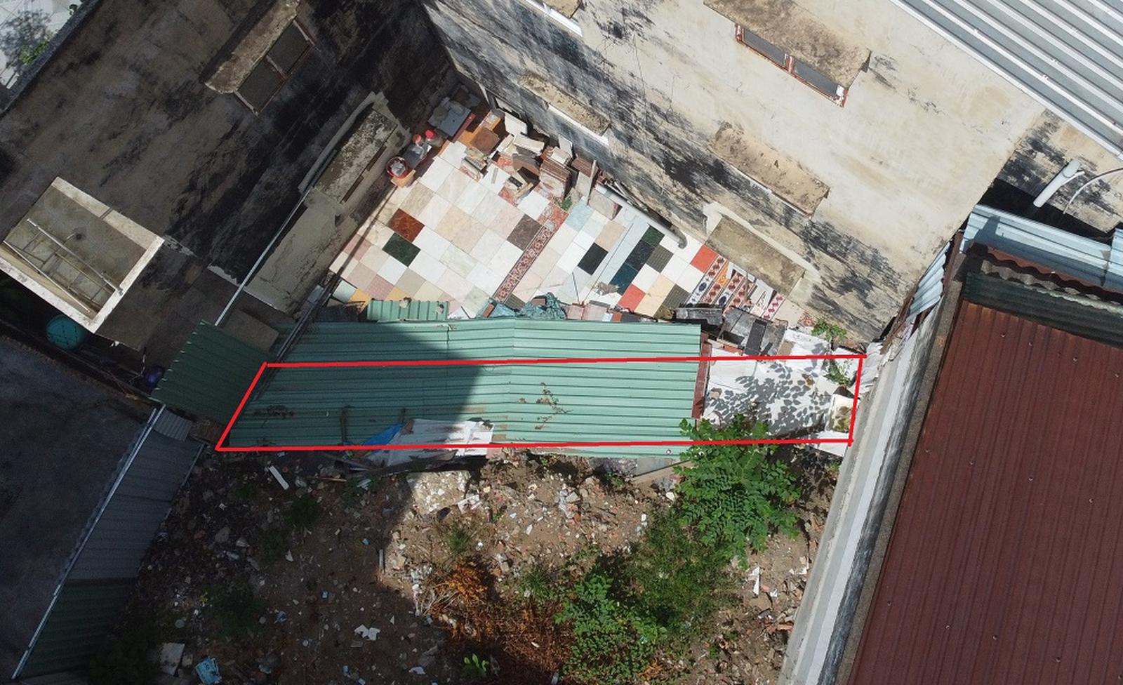 Căn nhà số 224/1/28 đường Ung Văn Khiêm (nằm giữa nhà bà Lương và bà Tuân) sau khi tháo dỡ để xây mới thì bị phát hiện có 1 đường ống cống dùng chung chạy dọc theo ranh giới nhà đất (phần khung đỏ)... Ảnh: C.T