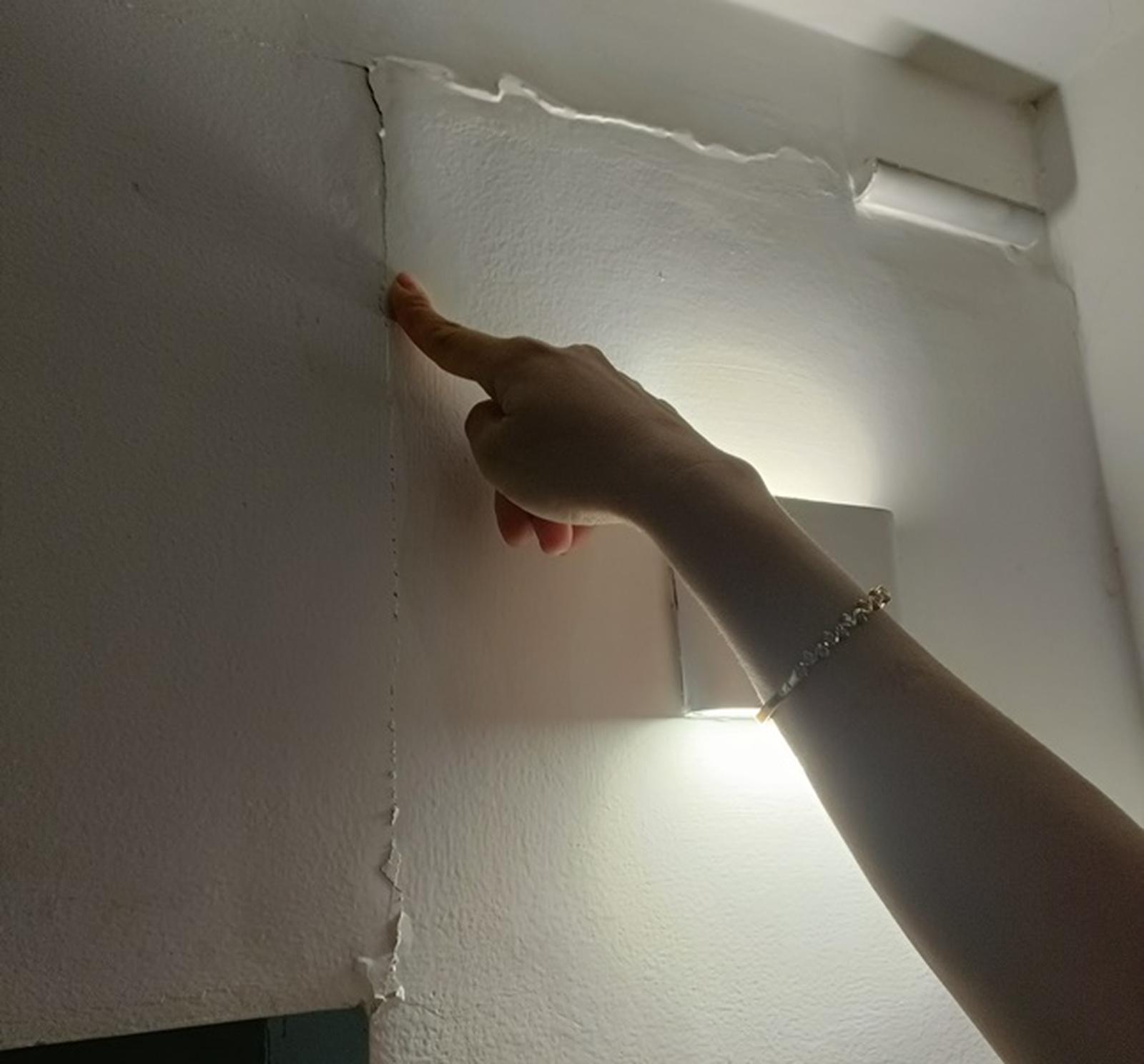 Thi công mất an toàn khách sạn Icon Green đã làm nhiều đồ đạc, tường nhà của người dân bị đổ vỡ, nứt toác. Ảnh: Nguyên Dũng