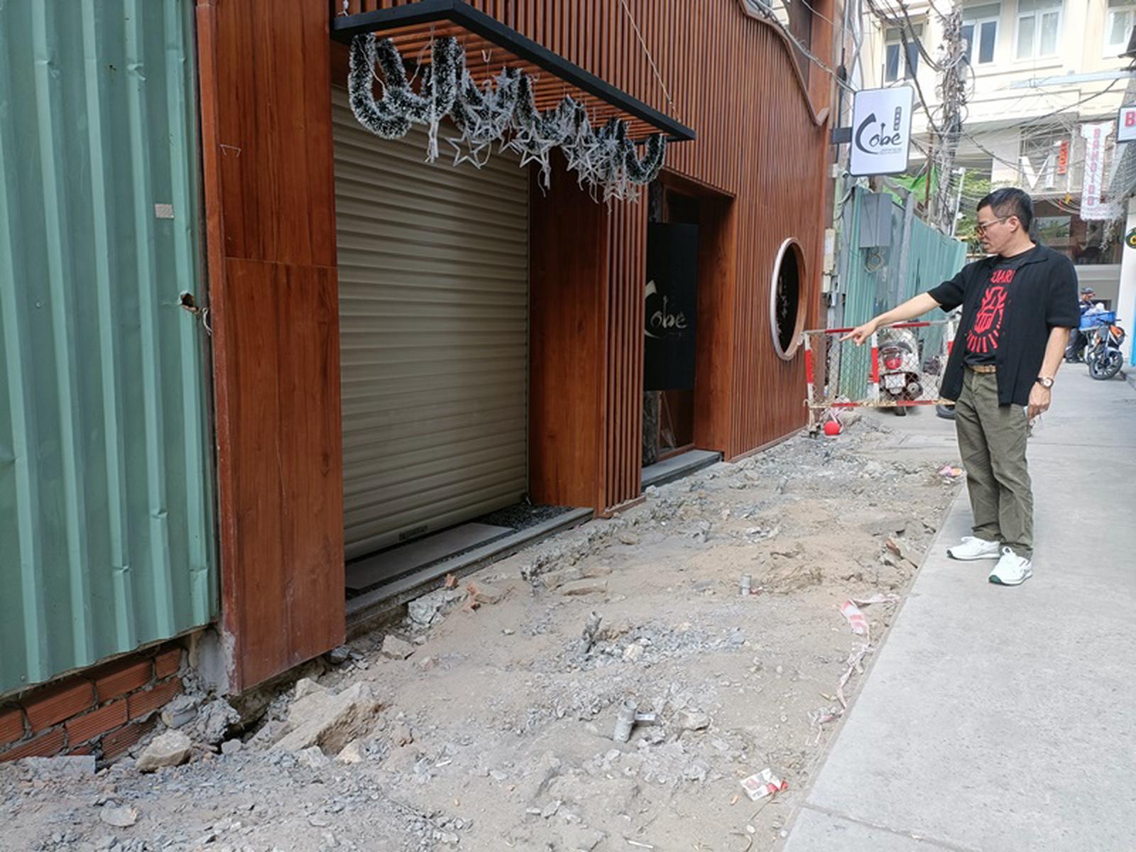 Chị Lê Kim Đính (34 tuổi, ngụ TP.Hồ Chí Minh) cho biết, chị thuê căn nhà trên của gia đình ông Hùng từ nhiều năm nay để mở tiệm spa - thẩm mỹ viện. Chị Đính đã đầu tư nhiều tỷ đồng vào thuê mặt bằng, mua trang thiết bị, máy móc, thuê người làm, kinh doanh. “Thời điểm trước, khi khách sạn Icon Green chưa thi công thì căn nhà kiên cố, chắc chắn, công việc kinh doanh bình thường. Từ tháng 5/2022 đến nay, đơn vị thi công đưa máy móc vào làm khách sạn thì nhà liên tục bị rung lắc, rạn nứt nhiều nơi. Toàn bộ 5 tầng của căn nhà đều có vết nứt lớn chạy dọc tường và cột nhà”, chị Đính nói.
