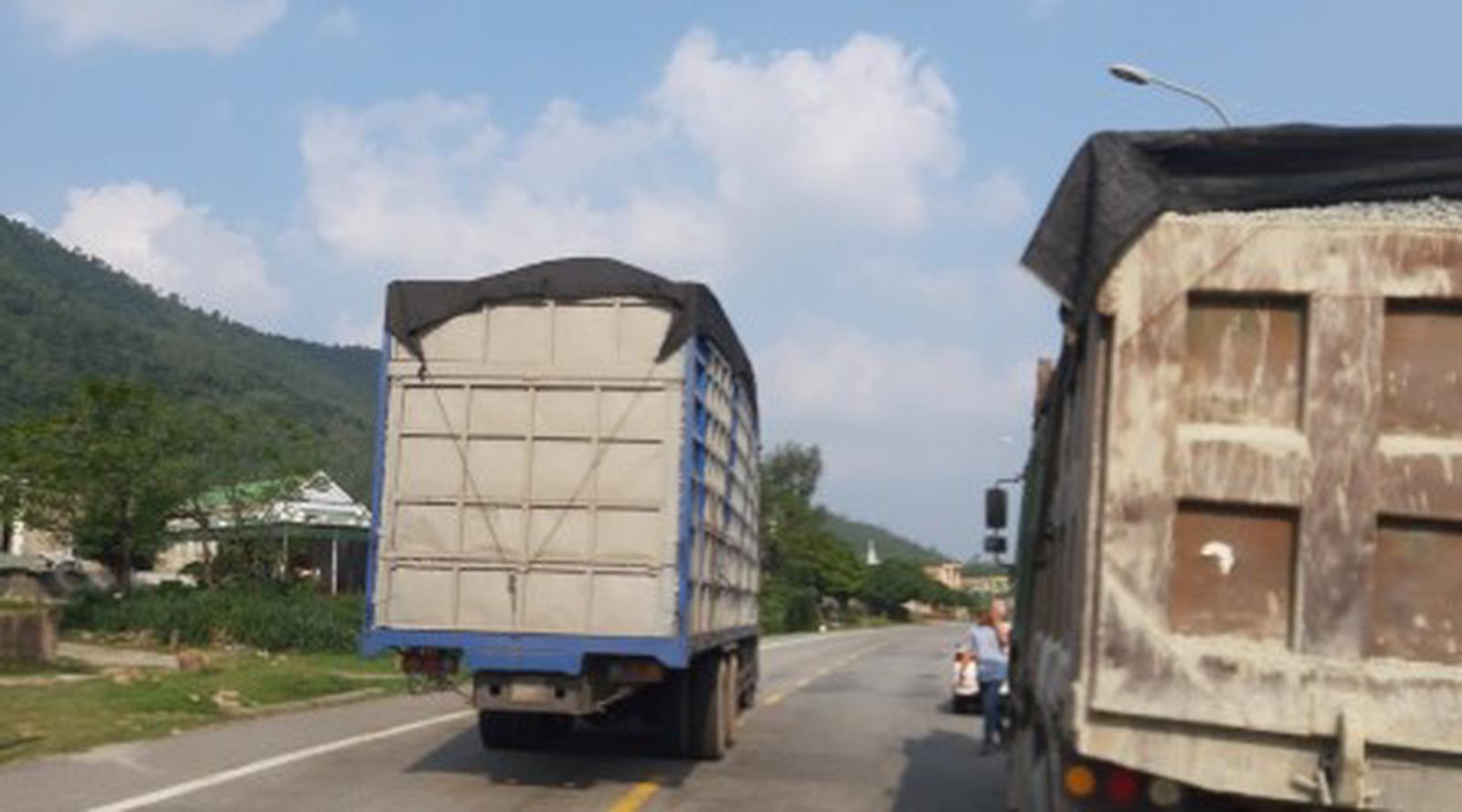 Xe quá tải, quá khổ, phóng nhanh vượt ẩu trên quốc lộ 12C của Tập đoàn Đ.A và CTy TNHH TM A. D. Ảnh: Duy Hưng – Doãn Nghị