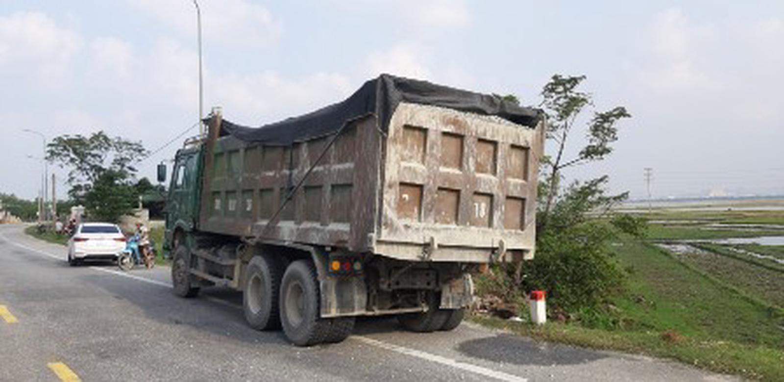 Khi đến đoạn đường này, chúng tôi chứng kiến có rất nhiều xe cơ giới chở hàng hóa có dấu hiệu quá khổ, quá tải ngang nhiên phóng nhanh, bụi bay mù mịt, sỏi đá rơi xuống đường khá nhiều. Nổi bật trong đội hình xe “bạt mạng” này là các xe của Tập đoàn Đông Anh và CTy TNHH TM A.D, đặc biệt là xe của Tập đoàn Đông Anh. Tuy nhiên, gần như cả ngày chúng tôi không thấy bóng dáng của lực lượng chức năng kiểm tra và xử lý.