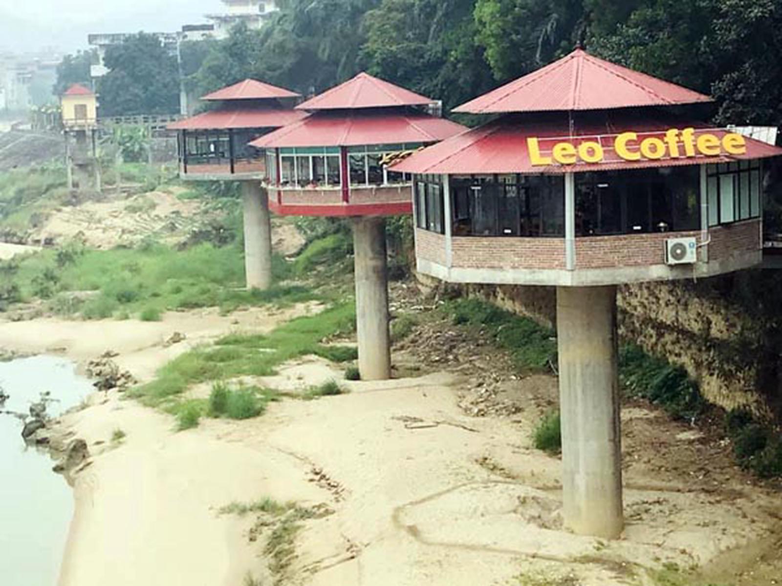 Khách san Ong Vàng được xây dựng sát lòng sông. Ảnh: Quang Minh