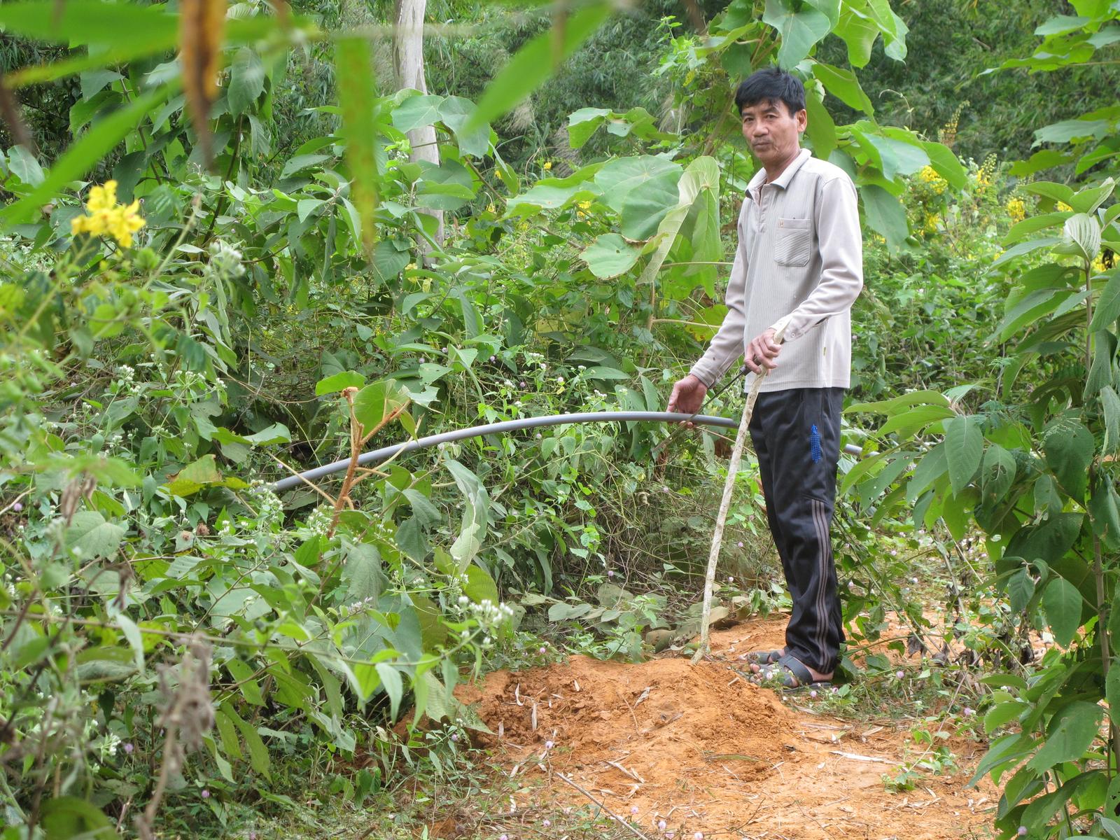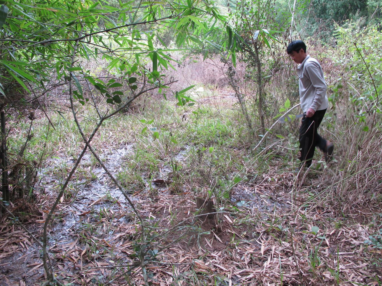 Không biết xưởng sản xuất đũa của ông Quản Trọng Hiếu giải quyết việc làm cho bao nhiêu lao động xóm Khả, xã Mai Hạ, giúp bao nhiêu hộ dân tăng thu nhập, xóa được đói nghèo, và nộp ngân sách cho địa phương bao nhiêu tiền, chỉ biết rằng một sự thật đang hiện hữu trước mắt, diễn ra ngày đêm ở xóm Khả, đó là, gần 100 hộ dân sống quanh khu xưởng đũa, ngày đêm gồng mình chống đỡ với tình trạng ô nhiễm môi trường nước và không khí. Ông Hà Thanh Ươm, Chi hội trưởng Chi Hội Nông dân xóm Khả cho biết: Cuối năm 2018, đầu năm 2017, xưởng đũa ông Hiếu xả nước thải trực tiếp vào ao bên đường cái rộng mấy nghìn mét vuông, nước đặc sệt, váng bết lại, gà con chạy trên mặt ao mà không bị lún, mùi hôi thối nồng nặc suốt ngày đêm. Nhất là ngày mưa, nước từ ao tràn ra đường, chảy xuống ruộng lênh láng. Nhà ai có trẻ nhỏ phải đem gửi ở xóm khác. Nước giếng khơi trước trong vắt, nay vàng đục, hôi thối, không dám dùng rửa chân tay, giặt giũ chứ đừng nói đến chuyện dùng để sinh hoạt, nhiều nhà phải đi mua nước bình về dùng. Nhà ông Ươm phải mua ống nhựa lấy nước từ trên khe núi về sử dụng. Bà Lê Thị Duyên, bức xúc nói: cái xưởng đũa này hành dân gần 2 năm nay rồi, nước thì ô nhiễm, không khí thì ngột ngạt vì mùi lưu huỳnh. Hôm nào thời tiết âm u, không có gió, khói từ lò sấy đũa phủ đặc cả xóm. Không thể thở nổi, sống như thế này rồi ủ bệnh mà chết dần chết mòn vậy thôi. Vũng nước thải đọng lại thành vũng nhầy nhụa, bốc mùi hôi thối ở đồi luồng Ông Ngần Việt Hòa than thở: Không chỉ nguồn nước, không khí bị ô nhiễm mà đất cũng bị ô nhiễm nặng, khu đồng ở đầu làng không trồng cấy được, mấy cái ao cá quanh khu xưởng đũa thành cái ao tù. Nuôi cá cũng không bán được, nói đến cá, rau xóm Khả là người ta sợ rồi. Ông Khà Thái Sàu, Chủ tịch UBND xã Mai Hạ cho biết: Sau khi nhận được phản ánh của người dân xóm Khả về tình trạng xưởng đũa ông Quản Trọng Hiếu xả thải không qua xử lý ra môi trường, UBND xã đã chỉ đạo lực lượng chức năng kiểm tra, lập biên bản yêu cầu chủ xưởng phải khắc phục hậu quả ô nhiễm môi trường, đồng thời xây dựng hệ thống xử lý nước thải theo đúng quy định mới được sản xuất. Tuy nhiên, chủ xưởng đũa là ông Quản Trọng Hiếu không chấp hành. Tháng 3/2019, cơ quan Công an tỉnh, huyện đã kiểm tra, lập biên bản xử lý, nhưng cũng không chuyển biến, tình trạng xả nước thải ra ao vẫn tiếp diễn. Tháng 8/2019 lực lượng chức năng của tỉnh, huyện tiếp tục kiểm tra lập biên bản, kiên quyết xử lý. Sau lần kiểm tra này, chủ ao đã san lấp ao. Xưởng đũa ông Hiếu hết chỗ xả thải. Ông Khà Thái Sàu nêu rõ quan điểm của chính quyền xã Mai Hạ là: Xã tạo mọi điều kiện thuận lợi nhất cho các doanh nghiệp hoạt động, nhưng kiên quyết không đánh đổi môi trường để thu hút đầu tư. Nếu xưởng đũa của ông Quản Trọng Hiếu không thực hiện nghiêm túc về đảm bảo môi trường thì sẽ dừng sản xuất. Ao đã bị lấp, xưởng đũa xả thải đi đâu? Để trả lời câu hỏi của chúng tôi, ông Hà Thanh Ươm đưa chúng tôi lên khu đồi luồng phía sau xưởng đũa. Đi đến một khu đất giáp tường bao của xưởng, ông Ươm chỉ vào hai đường ống cao su vắt qua tường bao, nói: Từ khi ao bị lấp, xưởng đũa dùng hai máy bơm, một máy to, một máy loại nhỏ, cứ chập tối hoặc mờ sáng là hút nước từ bể chứa nước thải trong xưởng đổ ra đồi luồng. Đồi luồng là đất đá, độ thẩm thấu lớn nên nước thải hút ra bao nhiêu, thấm xuống đất bấy nhiêu. Đồi luồng lại ở cao hơn khu dân cư nên các hộ dân phải hứng chịu tất cả lượng nước thải của xưởng đũa đổ ra. Không những thế, xưởng đũa còn lắp một đường ống dẫn nước thải xuyên qua bụi gai rậm rạp, đường ống này chạy đến đâu thì không ai biết. Thảm họa này còn nguy hiểm hơn, tai hại hơn rất nhiều nguồn nước thải đổ ra ao. Đây là cái ổ gieo mầm bệnh cho người dân, con cháu của người dân xóm Khả. Ông Ươm cho biết: Một đôi vợ chồng trẻ cùng làm ở xưởng đũa mới sinh con đầu lòng. Đứa bé sinh ra bị dị tật, chân còng queo. Nay hai vợ chồng đều đã nghỉ việc ở xưởng. Điều kiện lao động ở xưởng đũa rất độc hại, nhưng công nhân không được trang bị bảo hộ lao động đầy đủ. Một trong hai đường ống xưởng đũa dùng bơm nước ra đồi luồngKhông khí thì ô nhiễm lưu huỳnh từ lò sấy đũa. Nguồn nước thì ô nhiễm do nước thải chưa qua sử lý. Chưa hết, ban đêm, buổi trưa là những lúc người dân nghỉ ngơi thì xưởng đũa lại hoạt động, tiếng máy cắt cây luồng như xé tai, đinh óc, không thể chịu đựng được. Người dân xóm Khả than rằng, họ đã, đang bị và tiếp tục bị tra tấn không biết đến bao giờ. Người dân xóm Khả ngày đêm mong đợi các cơ quan chức năng c
