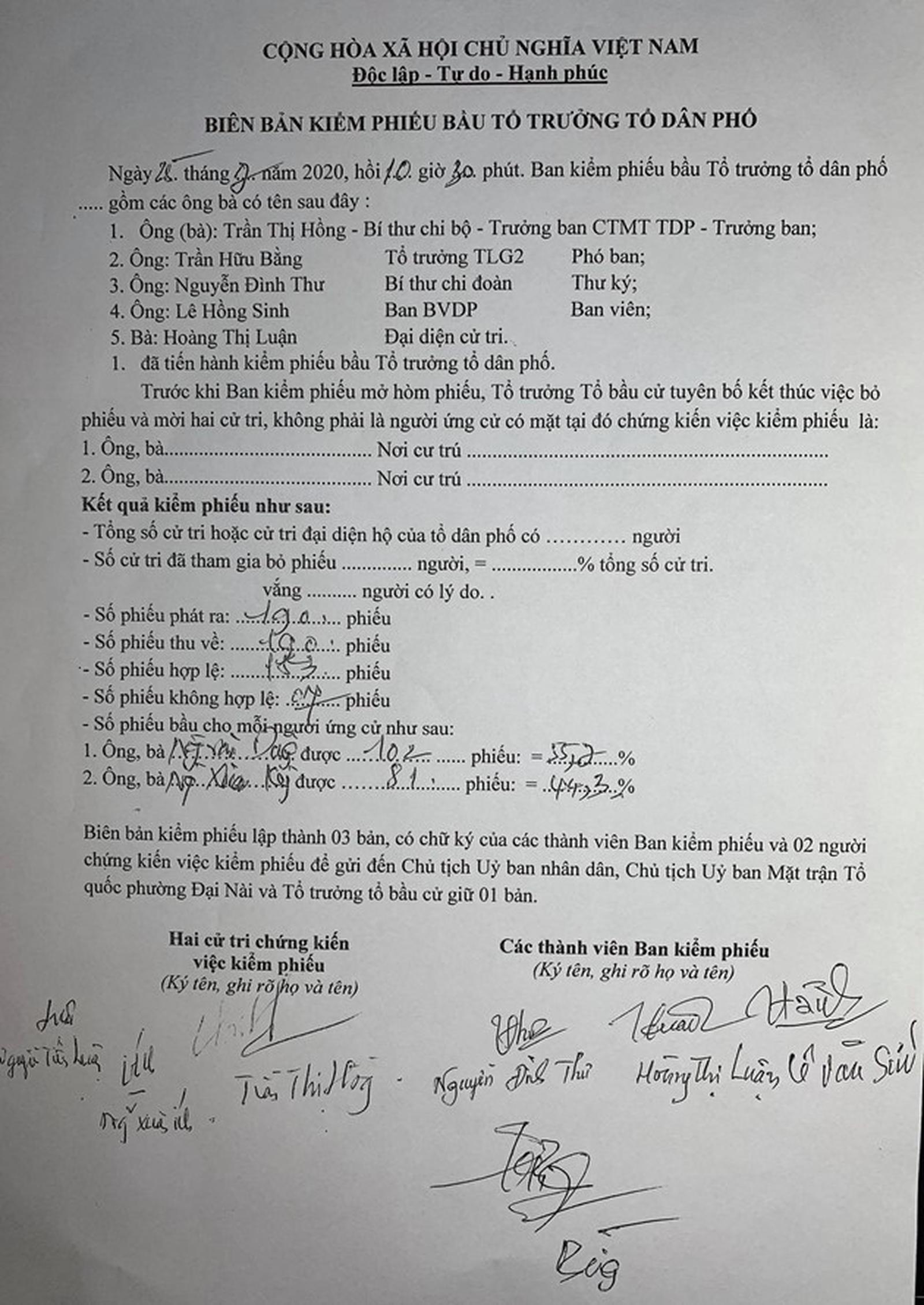 Người dân nghi ngại là có cơ sở, vì nhìn vào biên bản kiểm phiếu bầu Tổ trưởng Tổ dân phố khối II ngày 25/7/2020 cũng dễ nhận ra điều đó.