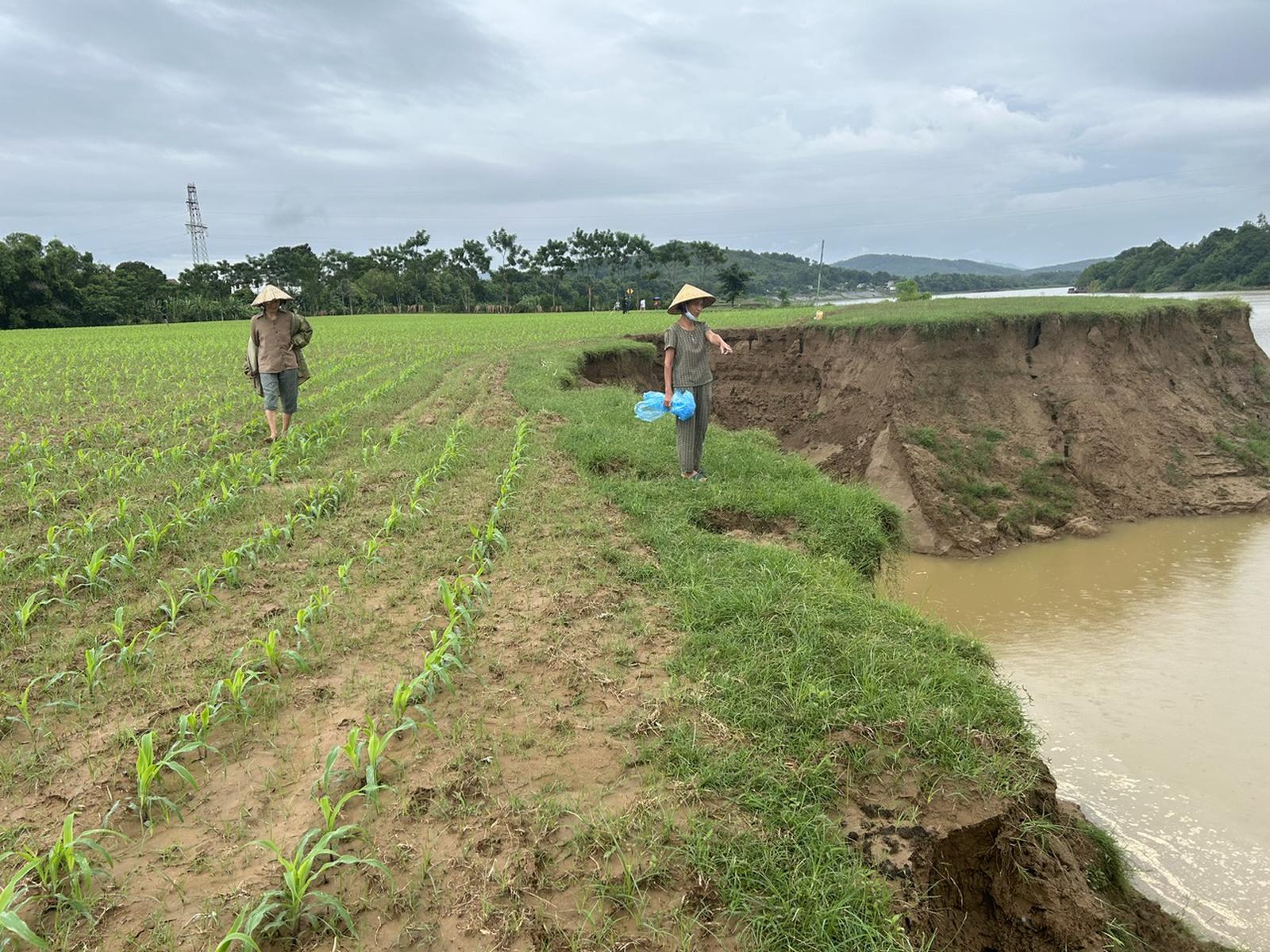 Người dân lo lắng khi đất sản xuất nông nghiệp bị sạt lở. Ảnh: Hương Trà