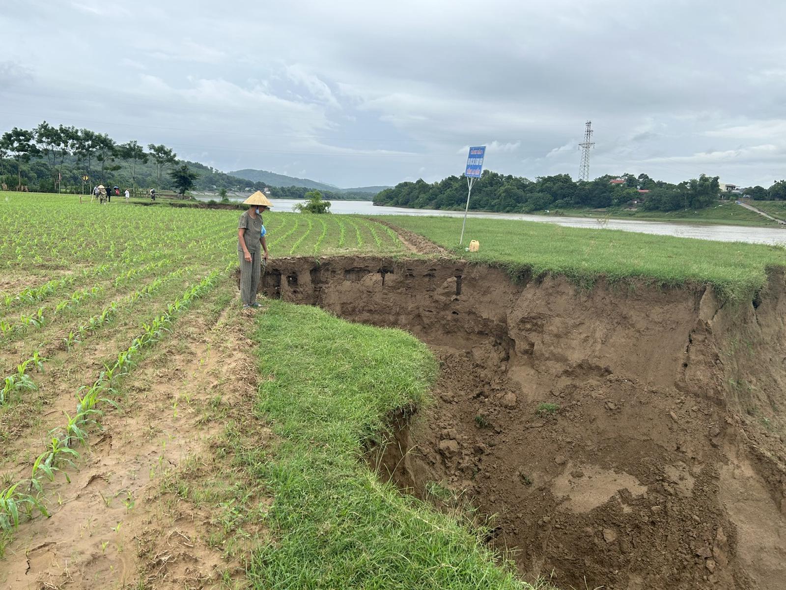 Sạt lở nghiêm trọng tại khu vực đất bãi bồi (đất nông nghiệp) của người dân thôn Nghĩa Kỳ. Ảnh: HT