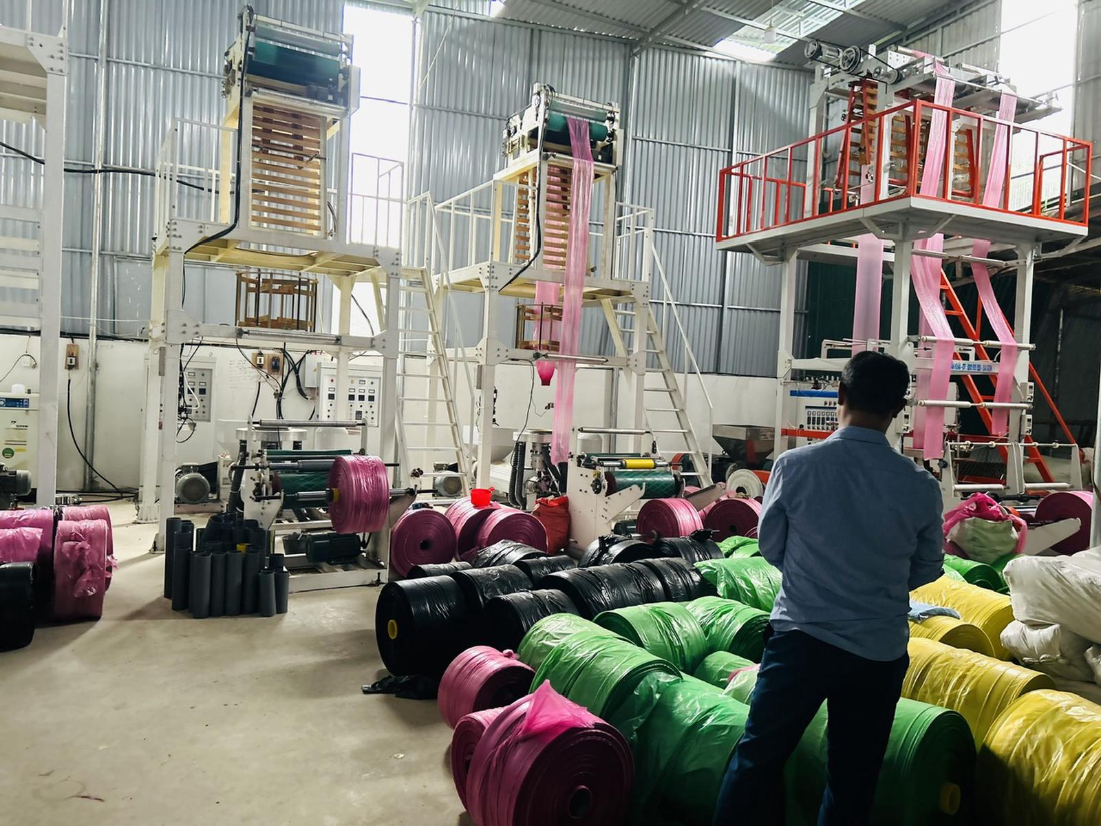 Máy sản xuất túi nilon tại cơ sở sản xuất của Cty Quang Huy, tại thôn 7, xã Thọ Cường, huyện Triệu Sơn. Ảnh: Hương Trà