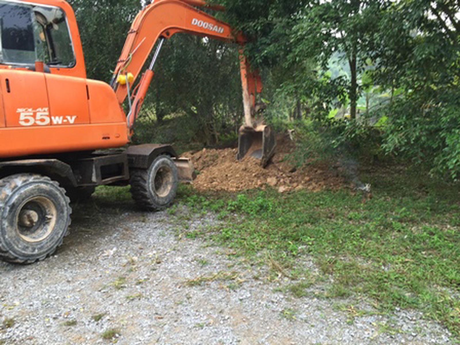 Nhận được tin báo từ anh Tiến, Công an huyện đã đến ghi nhận hiện trường vụ việc, đồng thời đưa máy xúc về Công an huyện tạm giữ...