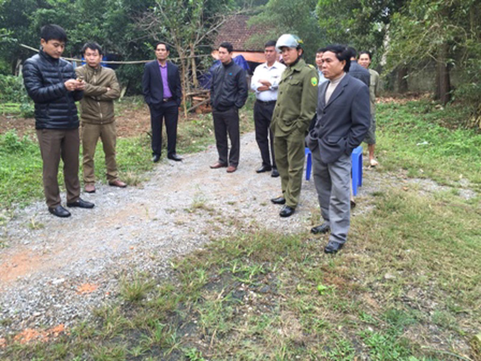 Ông Lê Tiến Đạt, Chủ tịch thị trấn Yên Cát đứng ngoài cùng bên trái. Ảnh: Trần Lê