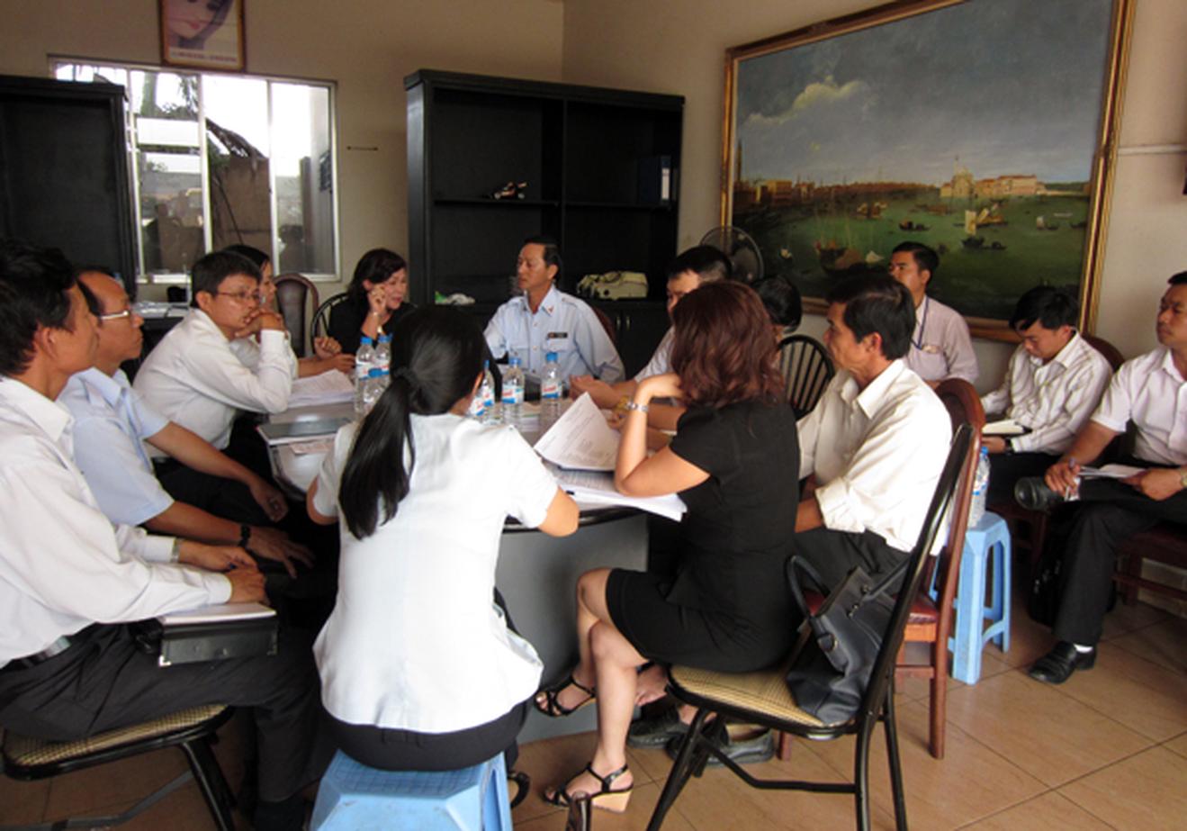 Đại diện Thanh tra tỉnh Bình Dương làm việc với Cty Vĩnh Phát xung quanh việc thu hồi đất. Ảnh: TL.