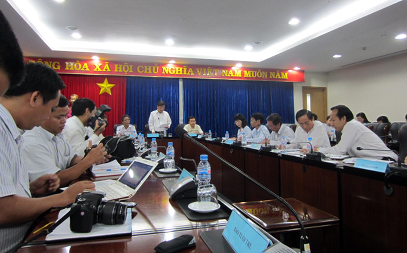Họp báo tại trụ sở UBND tỉnh Bình Dương về vụ khiếu nại tố cáo của Cty Vĩnh Phát. Ảnh: TL