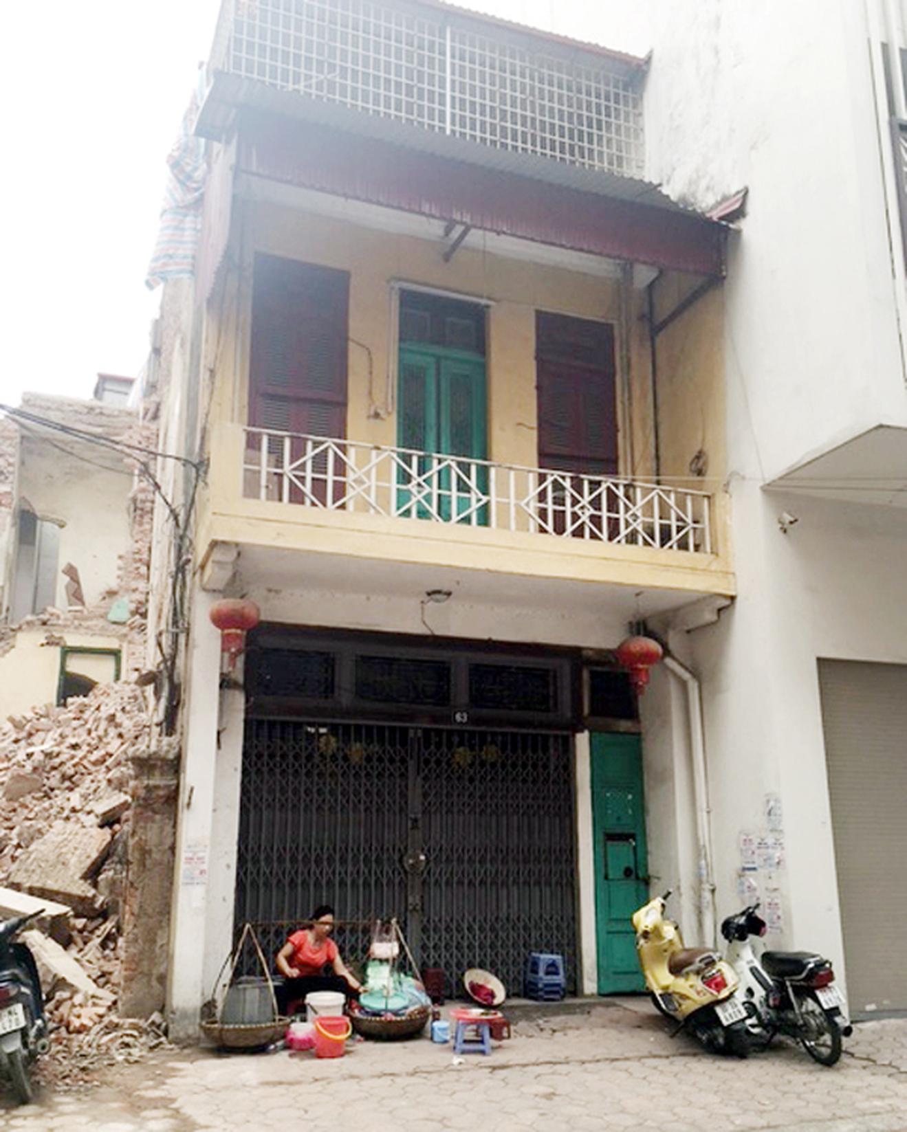 Hiện trạng ngôi nhà số 63 phố Bùi Thị Xuân, quận Hai Bà Trưng. Ảnh chụp lúc 11h ngày 13/4/2016