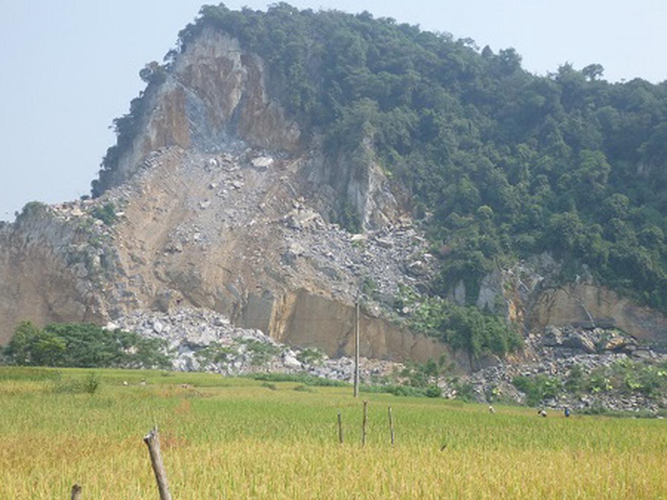 Theo người dân địa phương, các địa điểm bị thổ phỉ khai thác đá trái phép diễn ra từ nhiều tháng nay. Đặc biệt, có những điểm núi bị thổ phỉ nổ mìn đánh sập, đá sạt lở cả tòa dưới chân núi. Trên cao, những tảng đá chênh vênh có thể rơi bất cứ lúc nào, ẩn họa tai nạn lao động luôn rình rập.