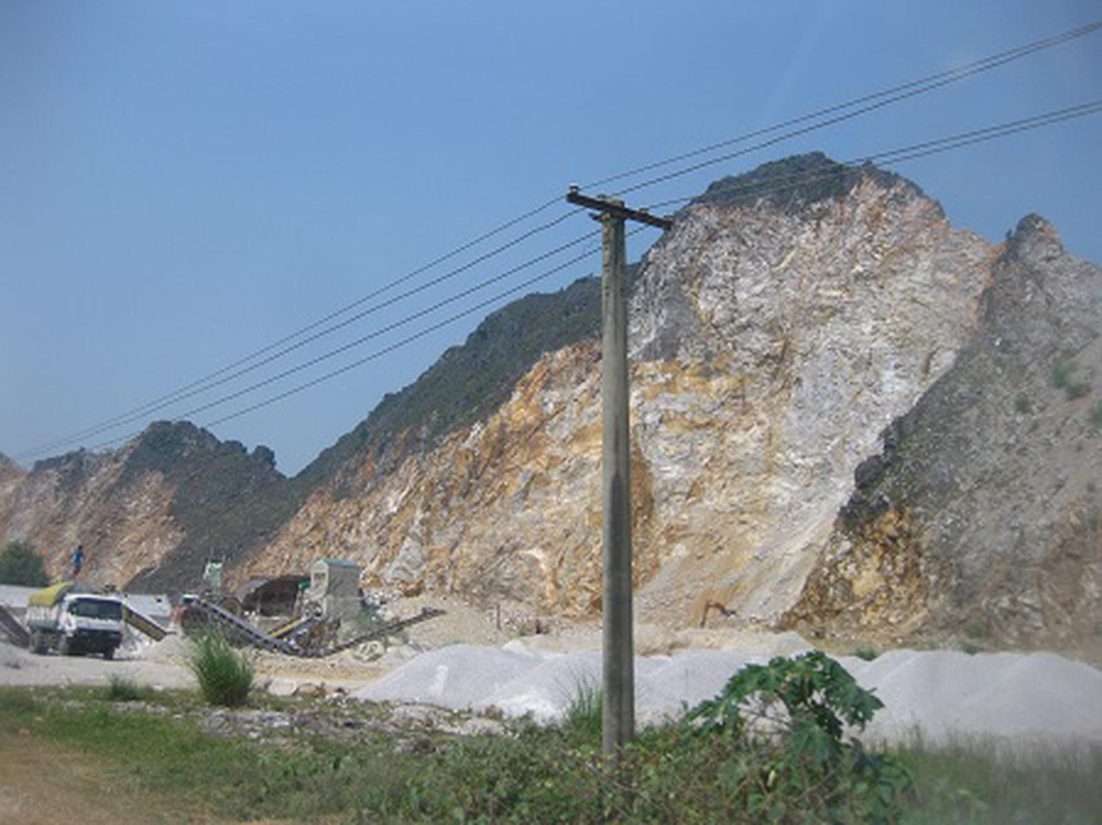 Lại gần hơn, khu vực núi Hoàng Sơn như một đại công trường, mọi hoạt động được diễn ra công khai. Tiếng máy kêu ầm ầm nghe đinh tai nhức óc, khói bụi bay mù mịt khắp nơi, gây ô nhiễm môi trường nghiêm trọng.