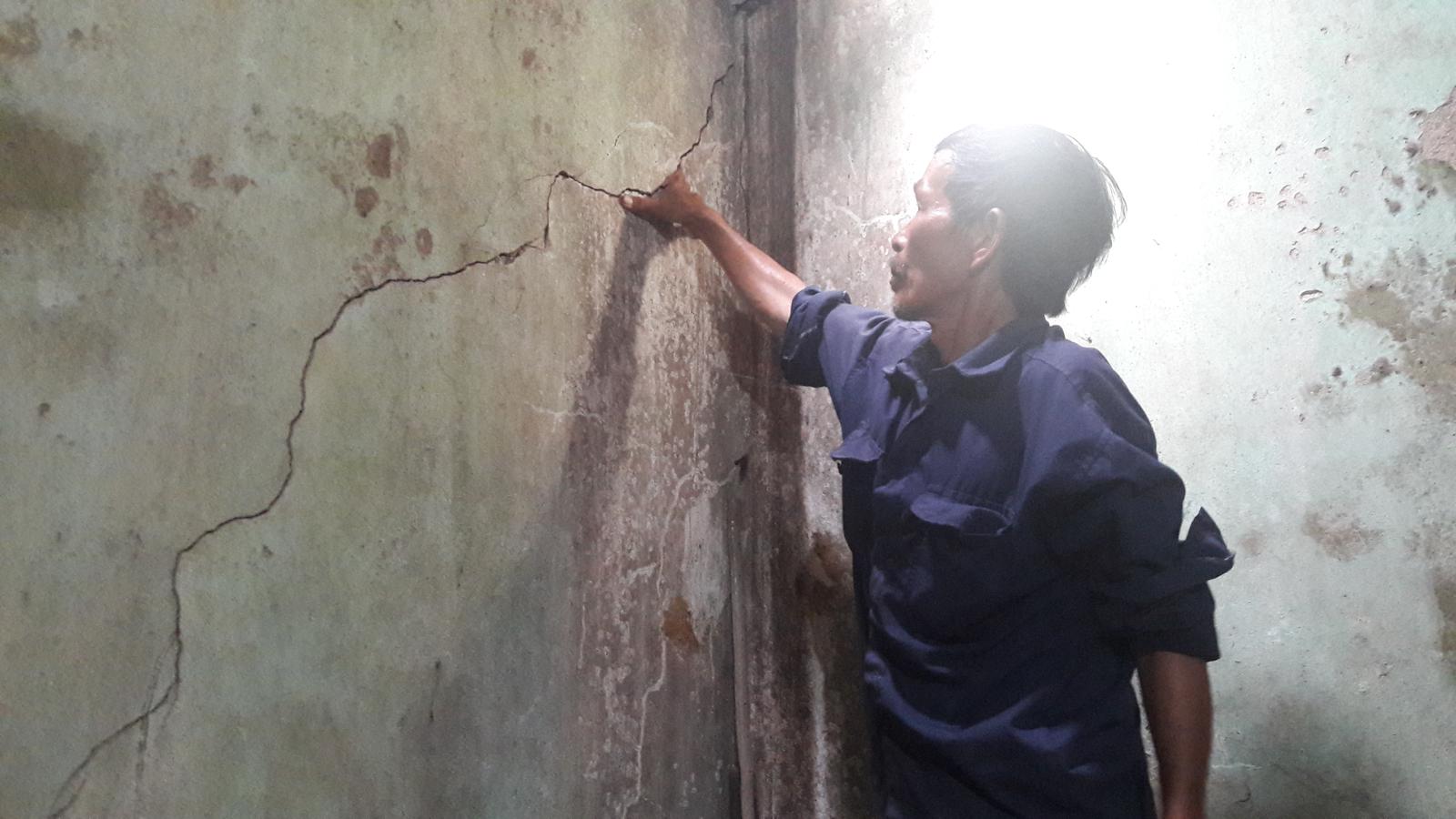Tường nhà ông Nguyễn Hồng Công bị nứt vết dài. Ảnh: NL