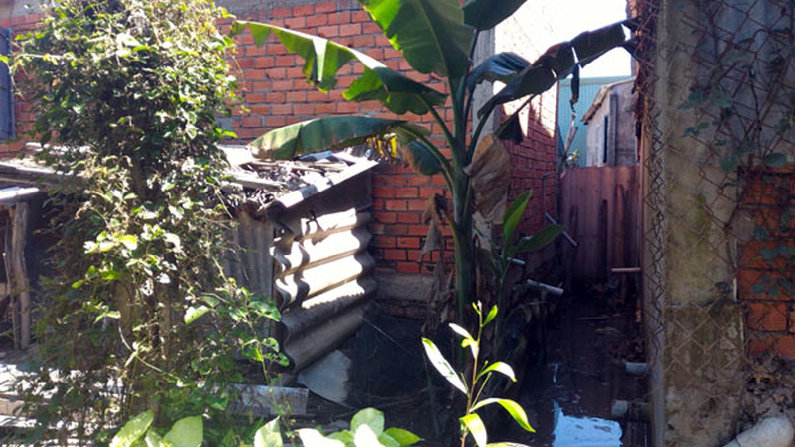 Mương nước bị nhiều gia đình lấn chiếm trái pháp luật gây cản trở dòng chảy, nước sinh hoạt ùn tắc bốc mùi hôi thối, mất vệ sinh. Ảnh: Chu Tuấn