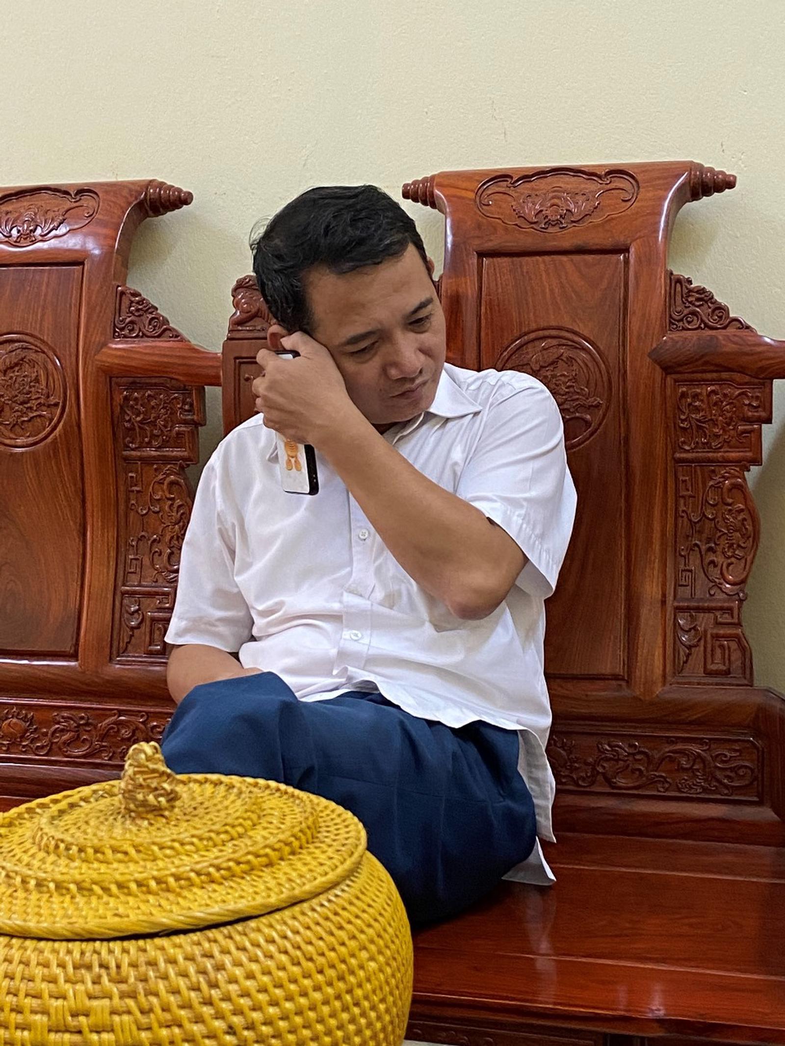 Trong khi làm việc, Chủ tịch xã Hà Lĩnh liên tục sử dụng điện thoại chỉ đạo dừng việc thi công cho đến khi hoàn tất thủ tục và được các cấp có thẩm quyền phê duyệt để tránh phiền toán đến cá nhân ông.