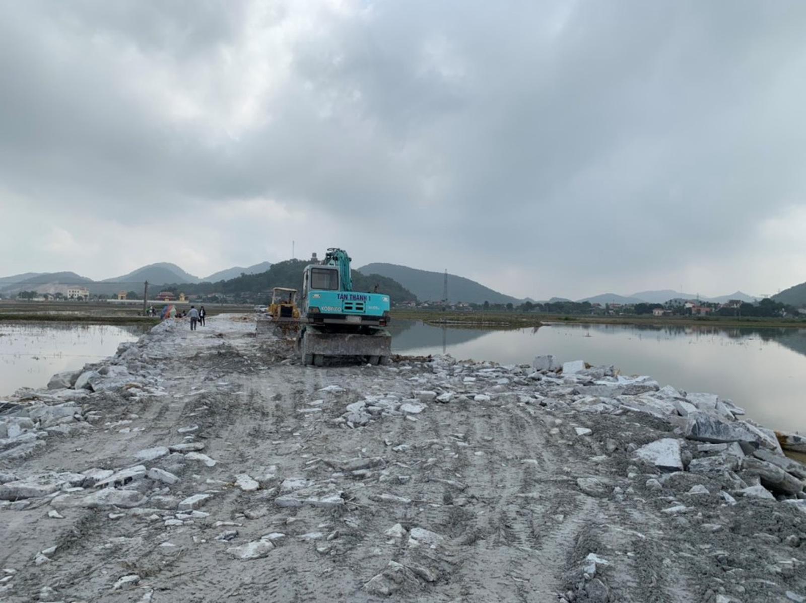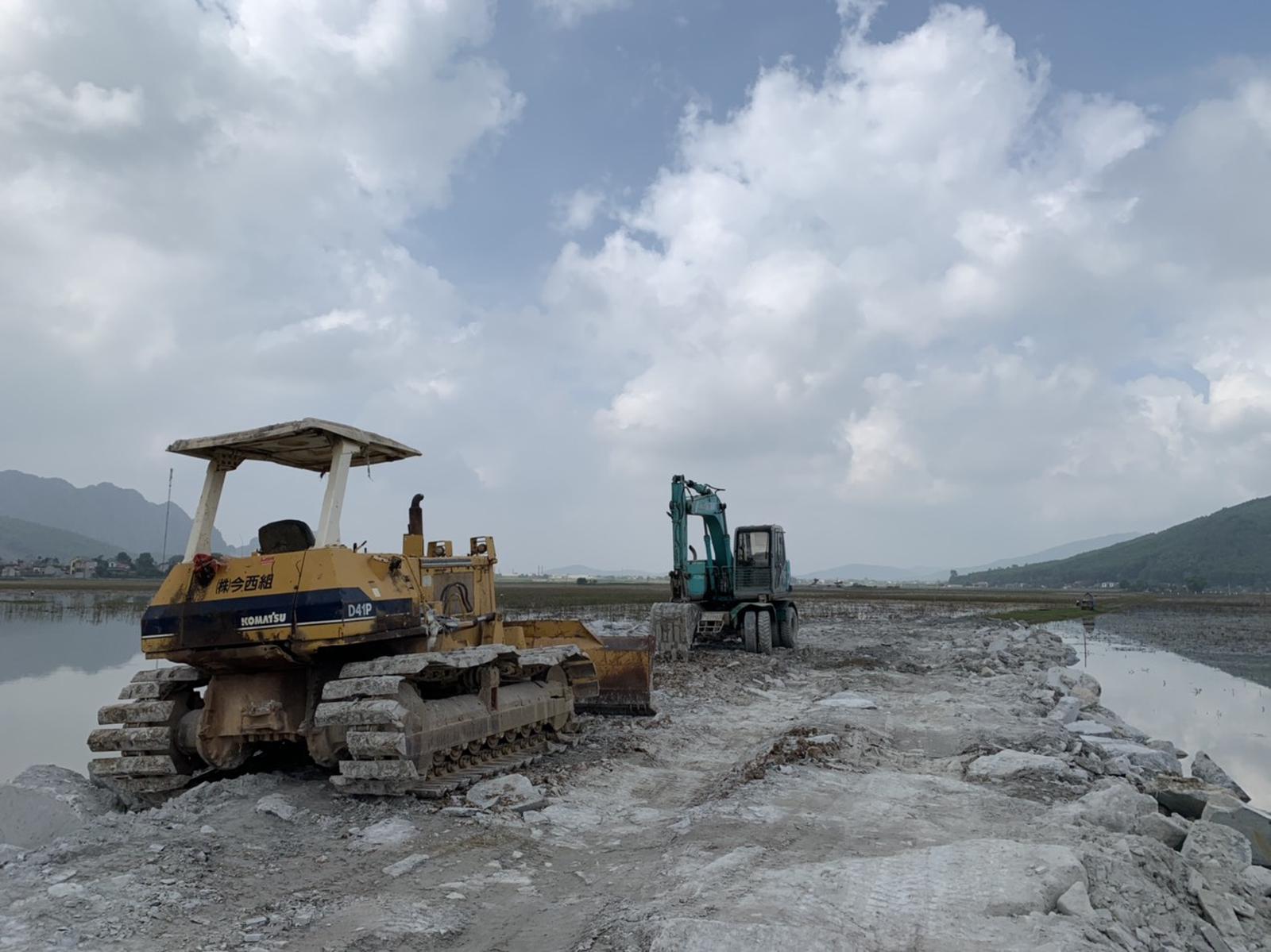 Những ngày gần đây, một số người dân xã Hà Lĩnh lại cho biết, khoảng đầu tháng 11, khi các cơ quan báo chí đưa tin, doanh nghiệp đã cho rút các loại máy xúc và dừng thi công. Cách đây vài hôm, họ lại cho hoạt động trở lại và còn hoạt động náo nhiệt hơn trước đó. Lúc này, tại công trình đang có 2 chiếc xe máy cẩu.