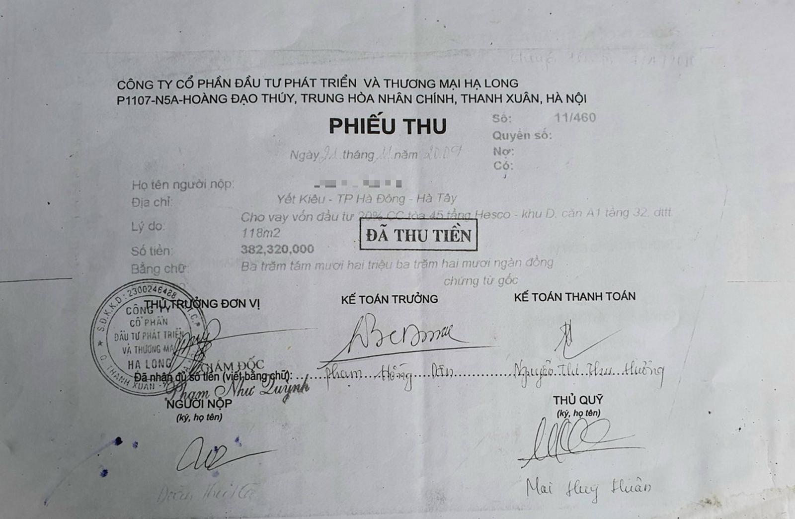 Thời điểm đó, theo thỏa thuận, nhiều khách hàng đã nộp 30% số tiền mua căn hộ từ 89m2 đến 118m2 với giá từ 16,5 triệu đồng đến 18,5 triệu đồng/m2, có hợp đồng và phiếu thu.