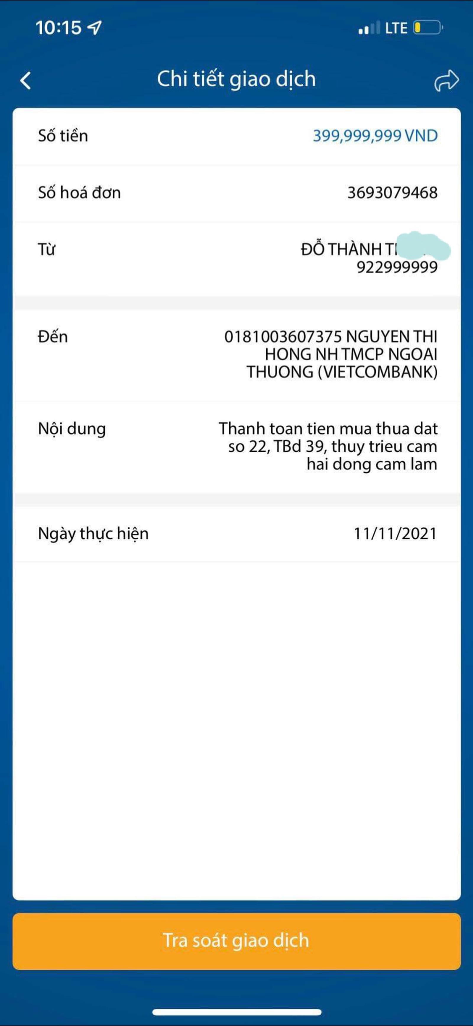 Anh T. chuyển khoản thanh toán tiền mua đất cho bà Hồng