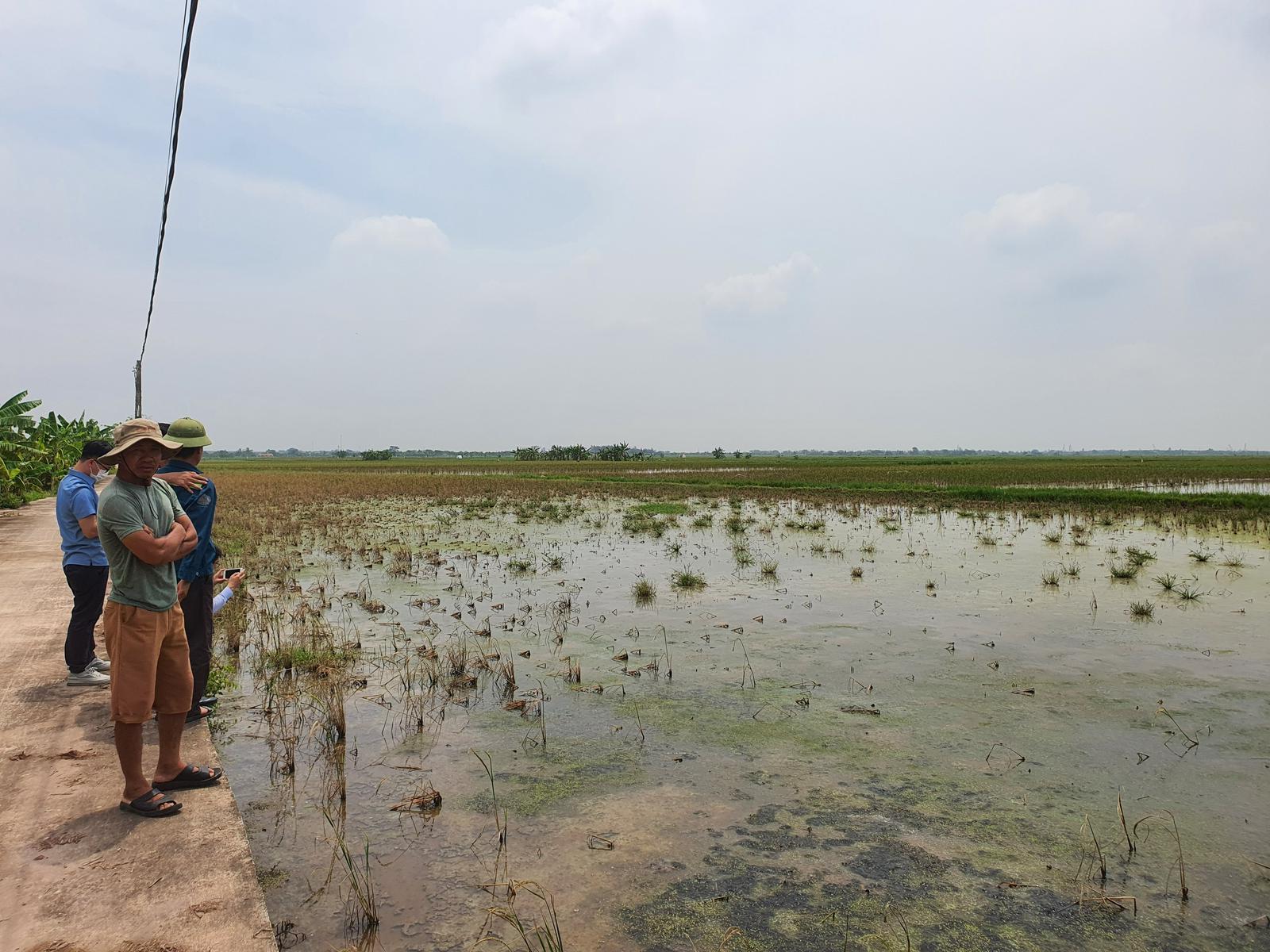 Hằng trăm hộ dân 5 thôn thuộc xã An Tân (Thụy Tân cũ) đang lo lắng vì hơn 100 ha lúa chết trắng cánh đồng. Ảnh: CB