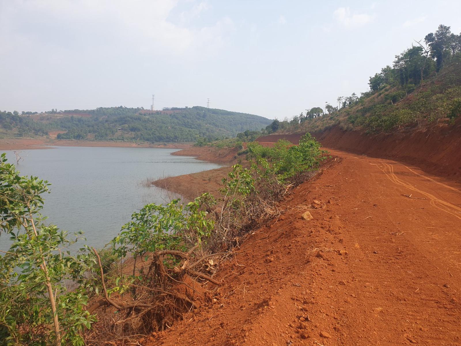 Con đường dài gần 2km được cá nhân tự ý san, ủi trái phép chạy quanh lòng hồ thủy điện. Ảnh: NC