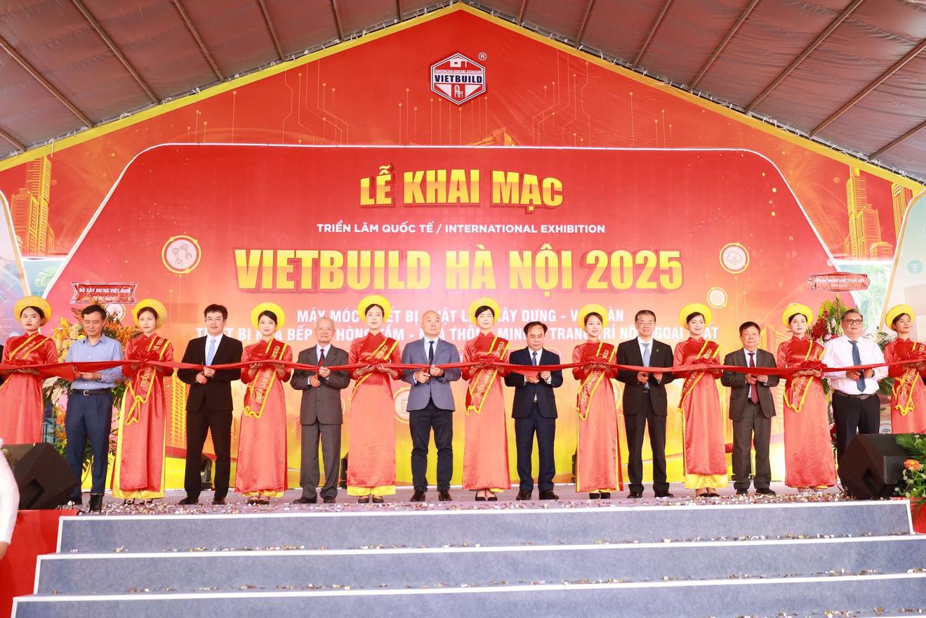 Các đại biểu cắt băng khai mạc Triển lãm Quốc tế VIETBUILD Hà Nội 2025 lần thứ Hai. Ảnh: XD