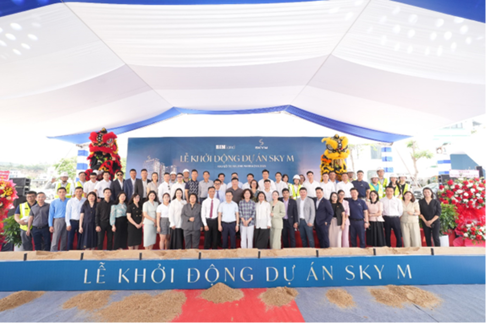 Đại diện BIM Land, nhà thầu và các đơn vị phân phối cùng thực hiện nghi thức khởi động SkyM, chính thức đánh dấu bước khởi đầu dự án bên vịnh di sản.