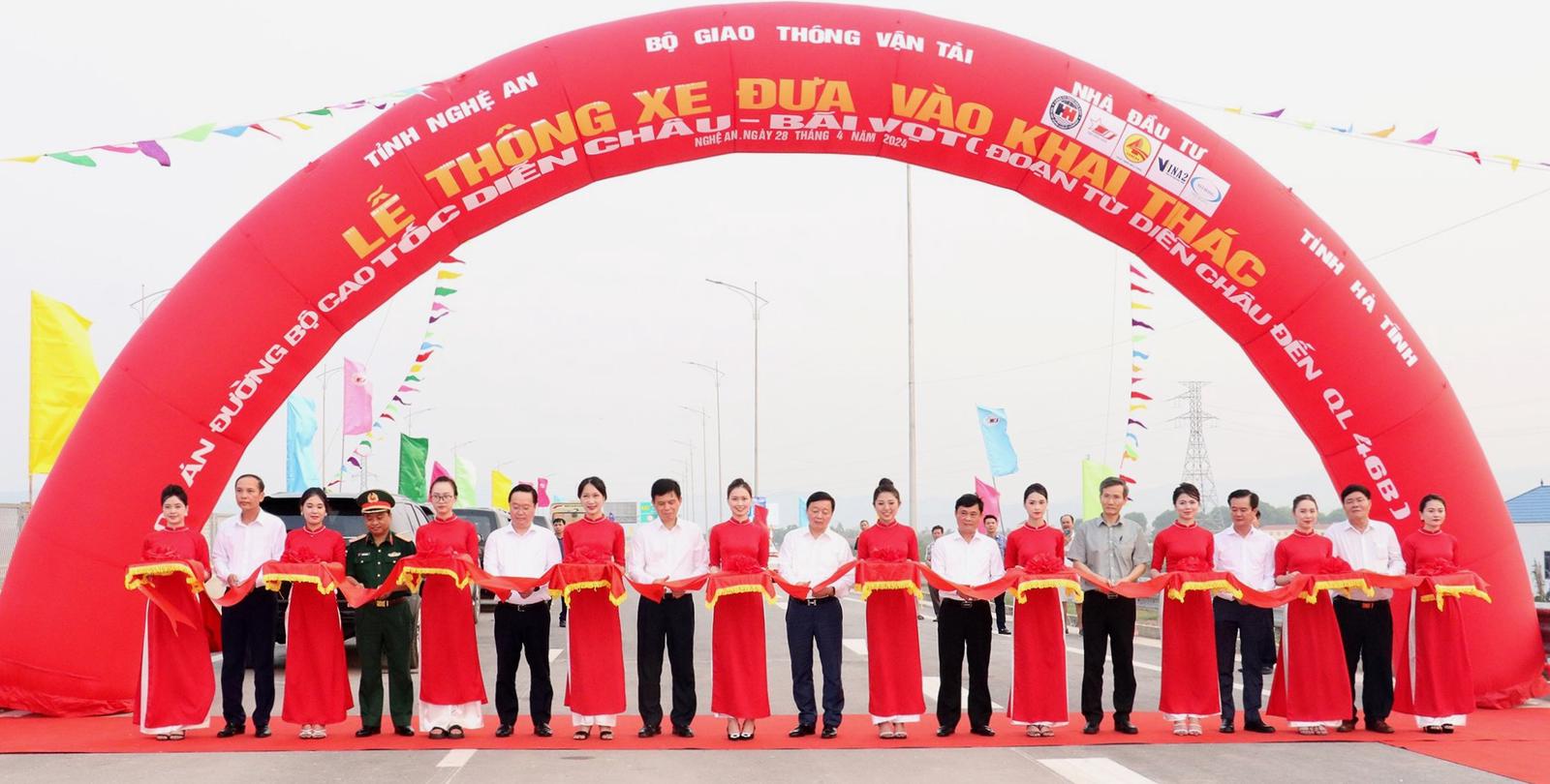 Đại biểu dự lễ cắt băng khai thác dự án thành phần tuyến cao tốc Diễn Châu - Bãi Vọt (đoạn từ Diễn Châu đến Quốc lộ 46B) tại Nghệ An. Ảnh: Xuân Thống