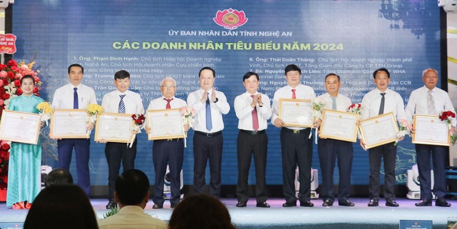 Tại chương trình, Chủ tịch UBND tỉnh đã tặng Bằng khen cho 30 doanh nghiệp và 10 doanh nhân tiêu biểu có thành tích xuất sắc trong hoạt động sản xuất kinh doanh và đóng góp vào an sinh xã hội, góp phần vào sự nghiệp phát triển kinh tế - xã hội tỉnh năm 2024; tặng bằng khen cho 10 tập thể và cá nhân có nhiều đóng góp trong công tác hỗ trợ và phát triển doanh nghiệp trên địa bàn.
