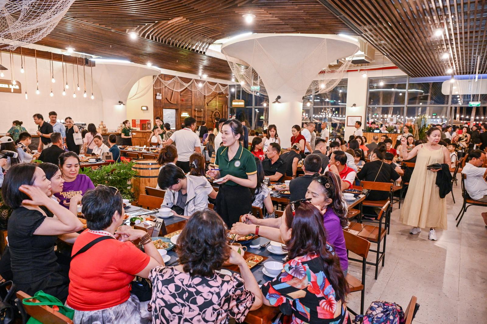 Chị Khánh Huyền (du khách Hà Nội) cho biết: “Tôi ấn tượng với không gian mở và cách bố trí rất thoải mái của nhà hàng. Buổi chiều ngồi ăn nhìn ra biển, ngắm hoàng hôn trên vịnh rất đẹp, đến tối thì không khí lại sôi động hơn. Đồ ăn hợp khẩu vị, nhiều lựa chọn, dịch vụ cũng khá tiện nghi.”