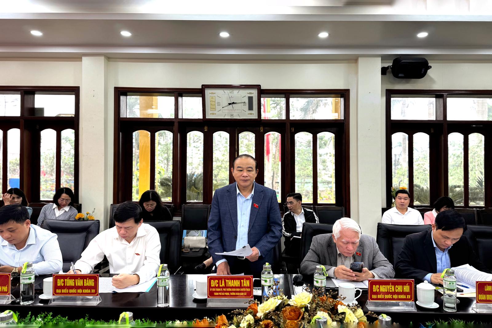 Phó Trưởng Đoàn đại biểu Quốc hội chuyên trách thành phố Hải Phòng Lã Thanh Tân phát biểu. Ảnh: TT
